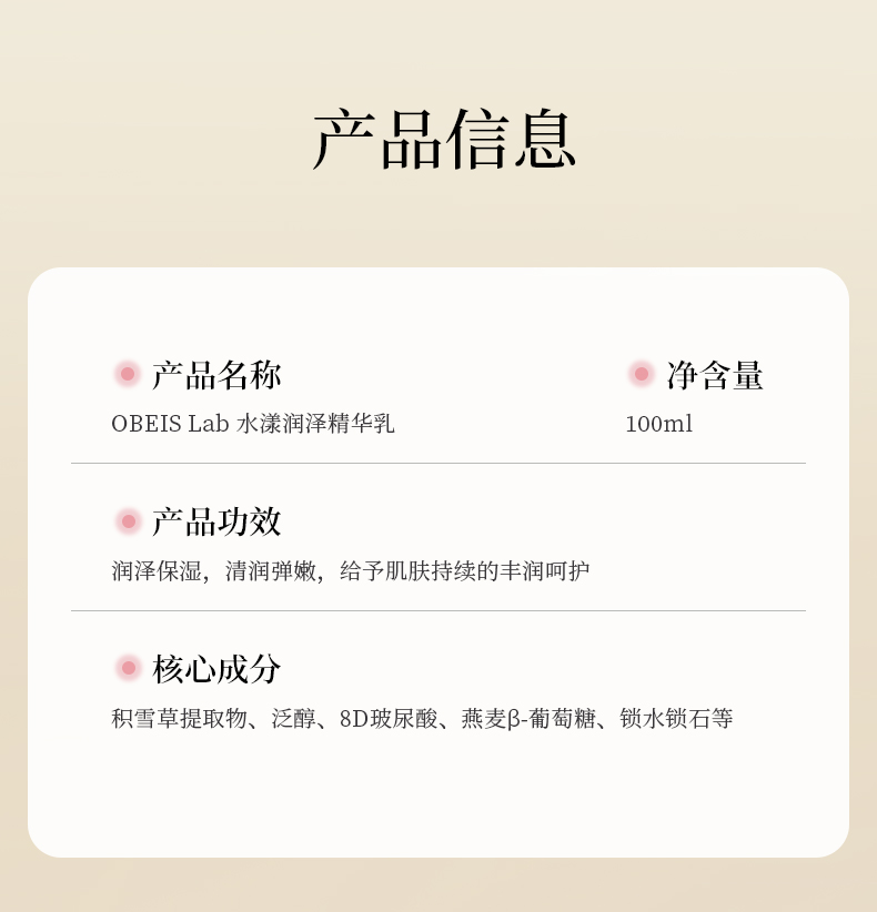 商品名称:obeis/欧贝斯水漾润泽精华乳100ml
