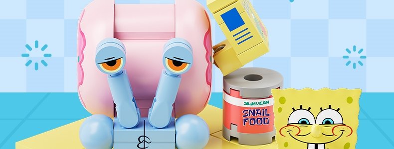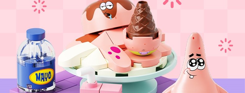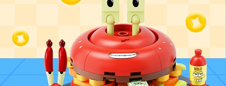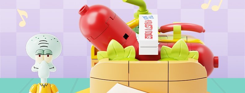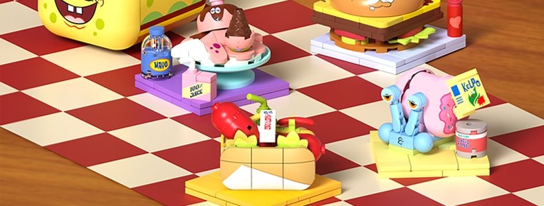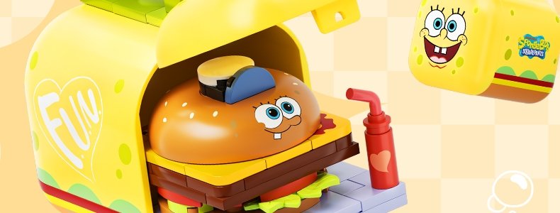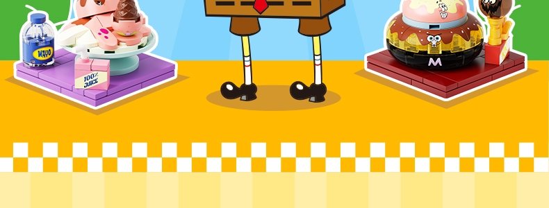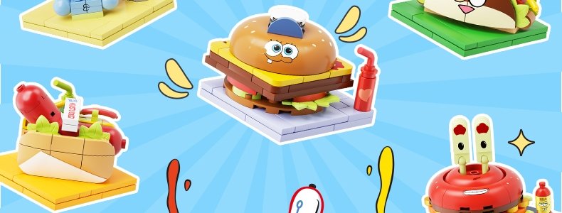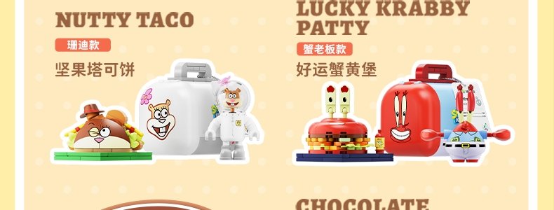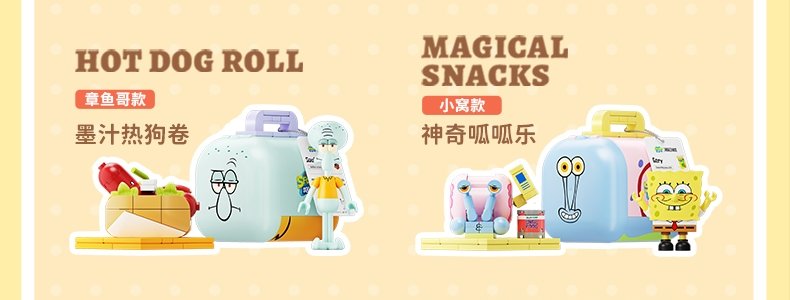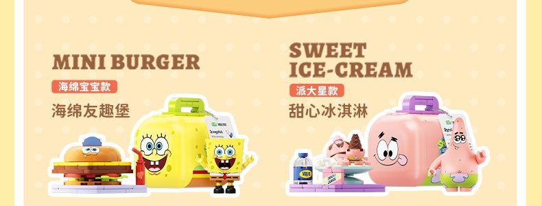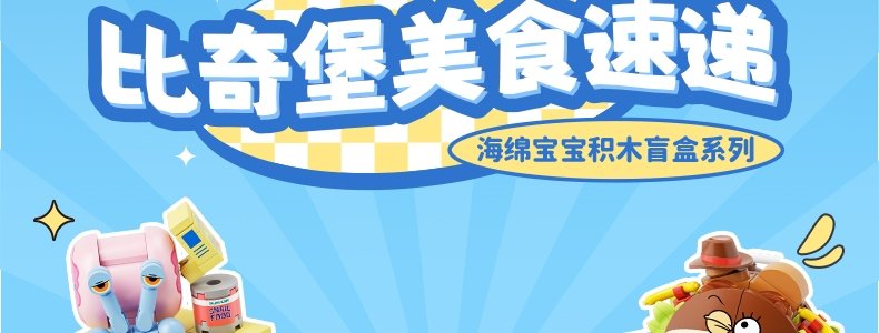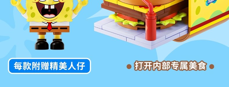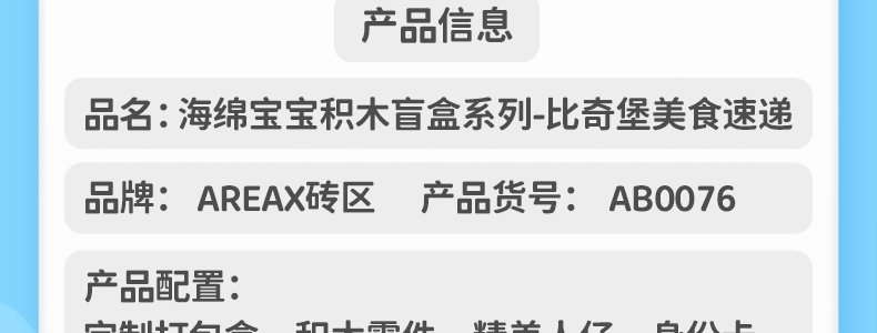 商品名称:AREA-X砖区 海绵宝宝积木盲盒系列-比奇堡美食速递(盲盒款式随机发货)