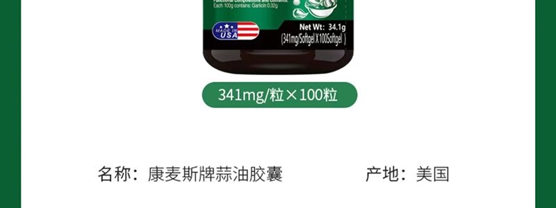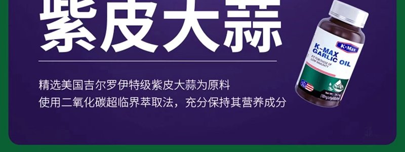 商品名称:美国 康麦斯(K-Max) 蒜油软胶囊 100粒