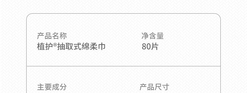 商品名称:植护 抽取式加厚绵柔巾80抽/包 (紫*3+粉*3+绿*2/8包)
