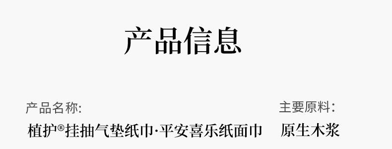 商品名称:植护 挂抽气垫纸巾平安喜乐4层面巾纸 320抽*4提