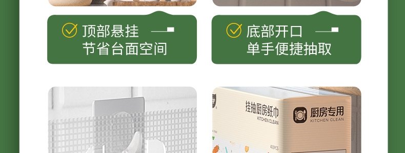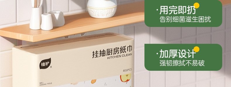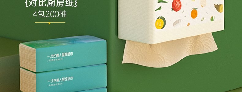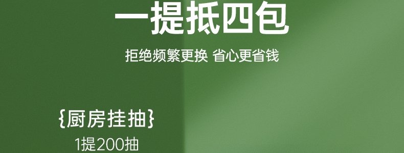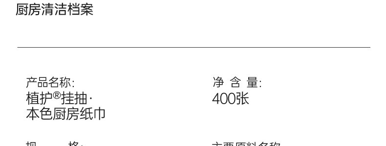 商品名称:植护 挂抽2层本色厨房纸巾 200抽*4提