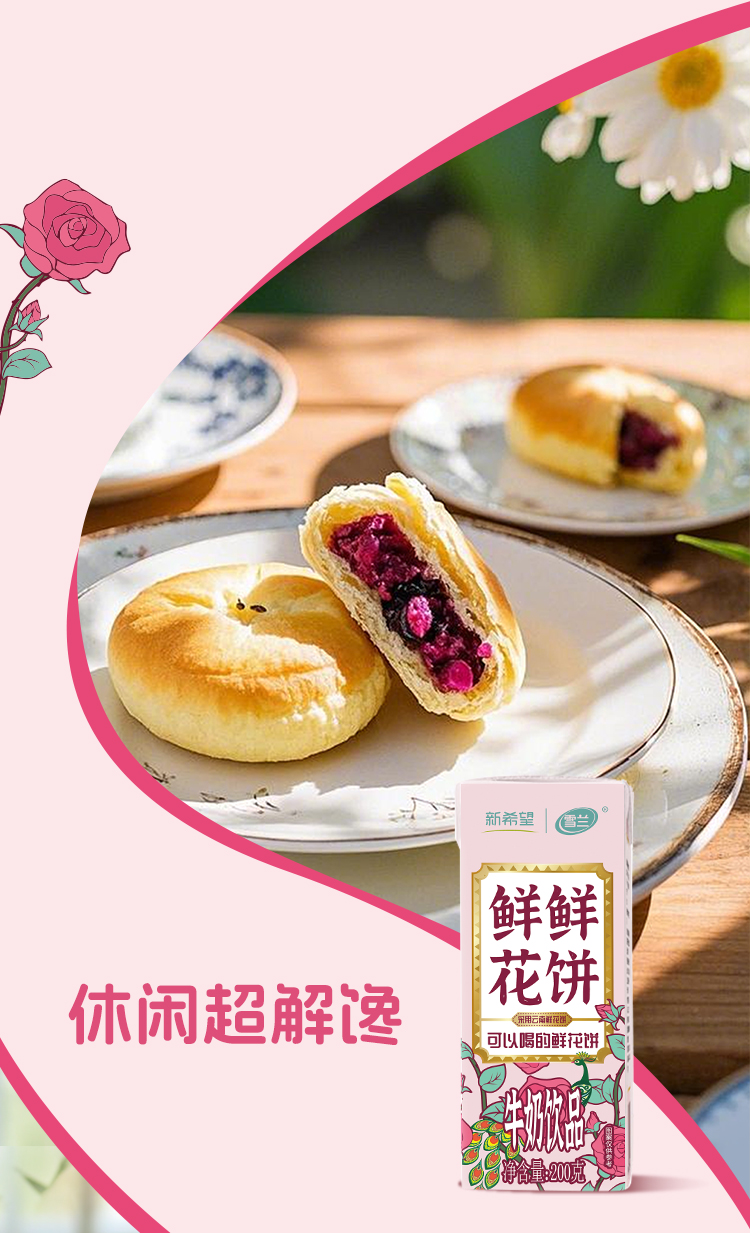 新希望雪兰鲜鲜花饼牛奶饮品