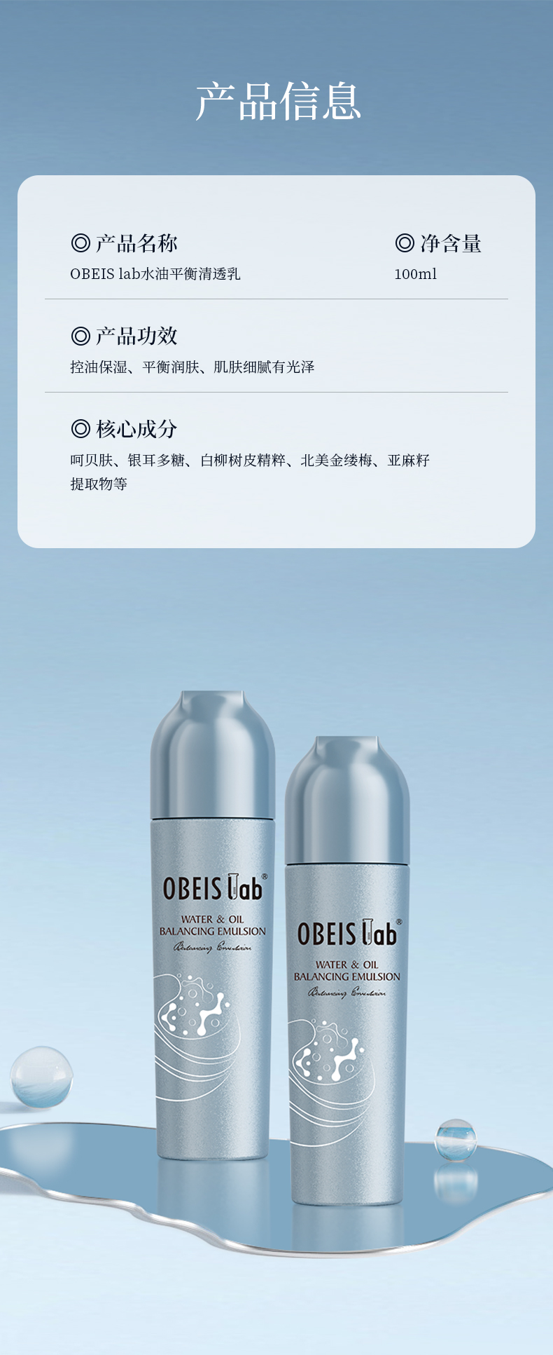 商品名称:obeis/欧贝斯水油平衡清透乳100ml