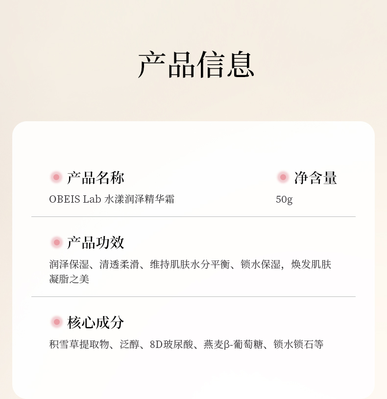 商品名称:obeis/欧贝斯水漾润泽精华霜50g