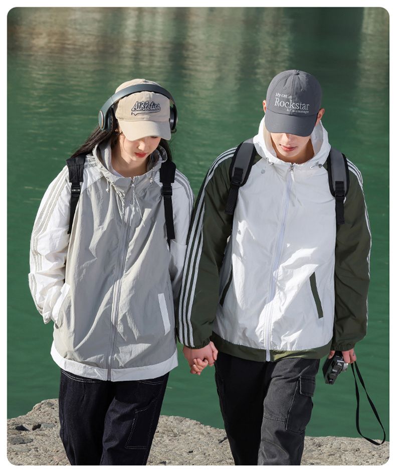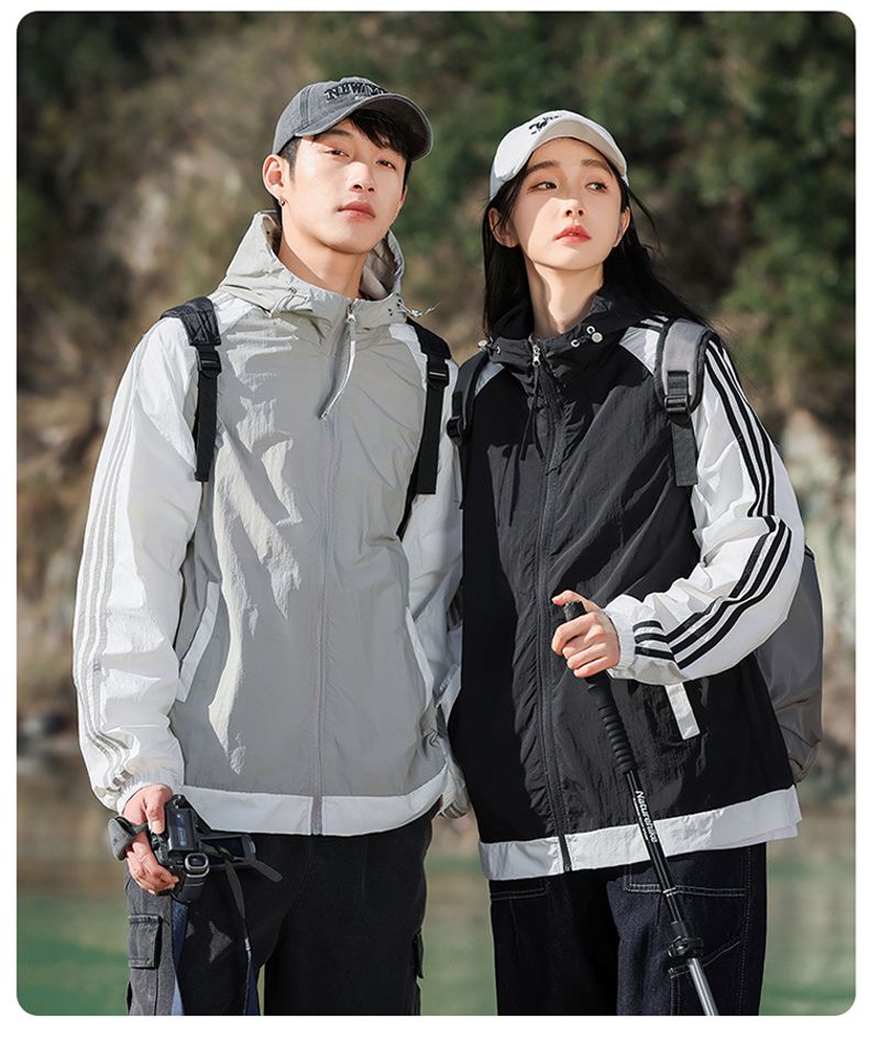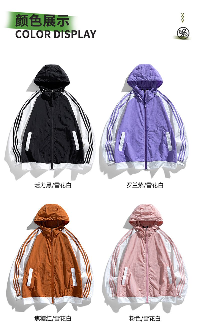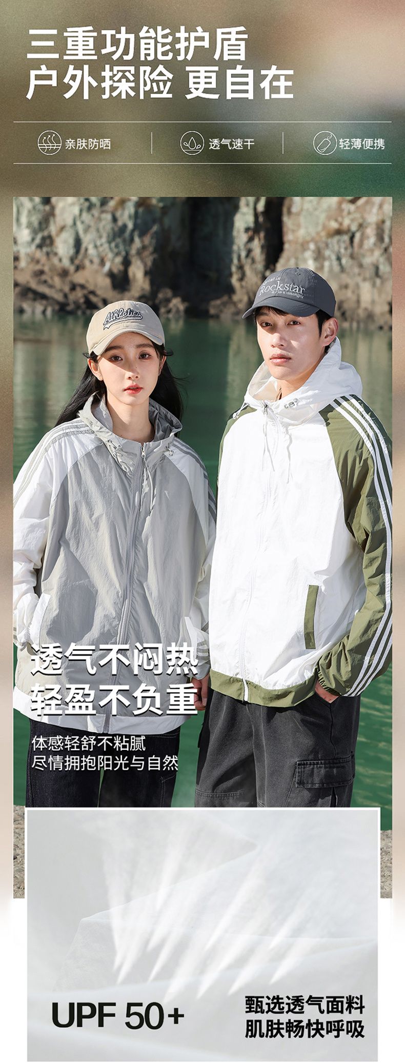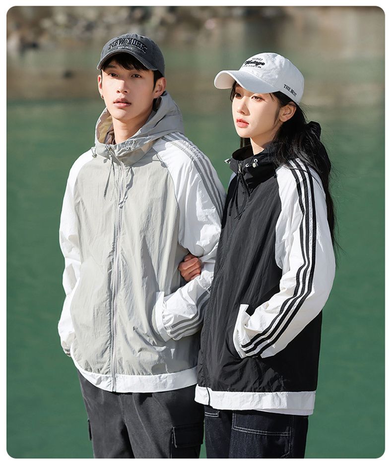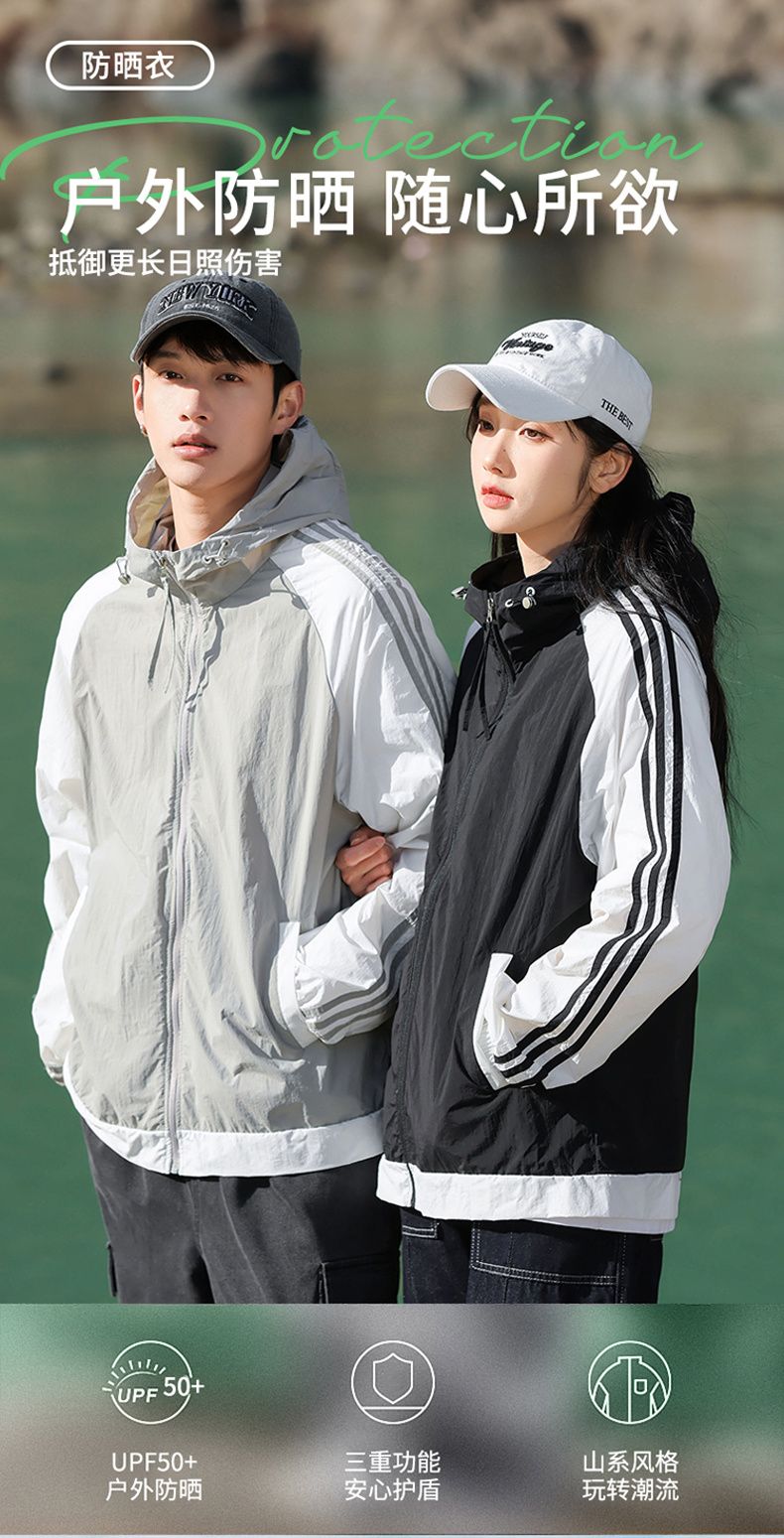 商品名称:型煜 2025夏季新款情侣防晒衣时尚潮牌三条杠连帽外套