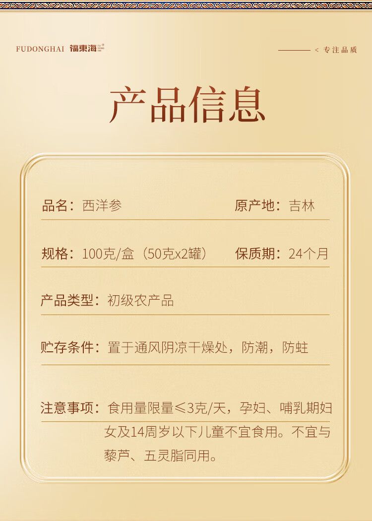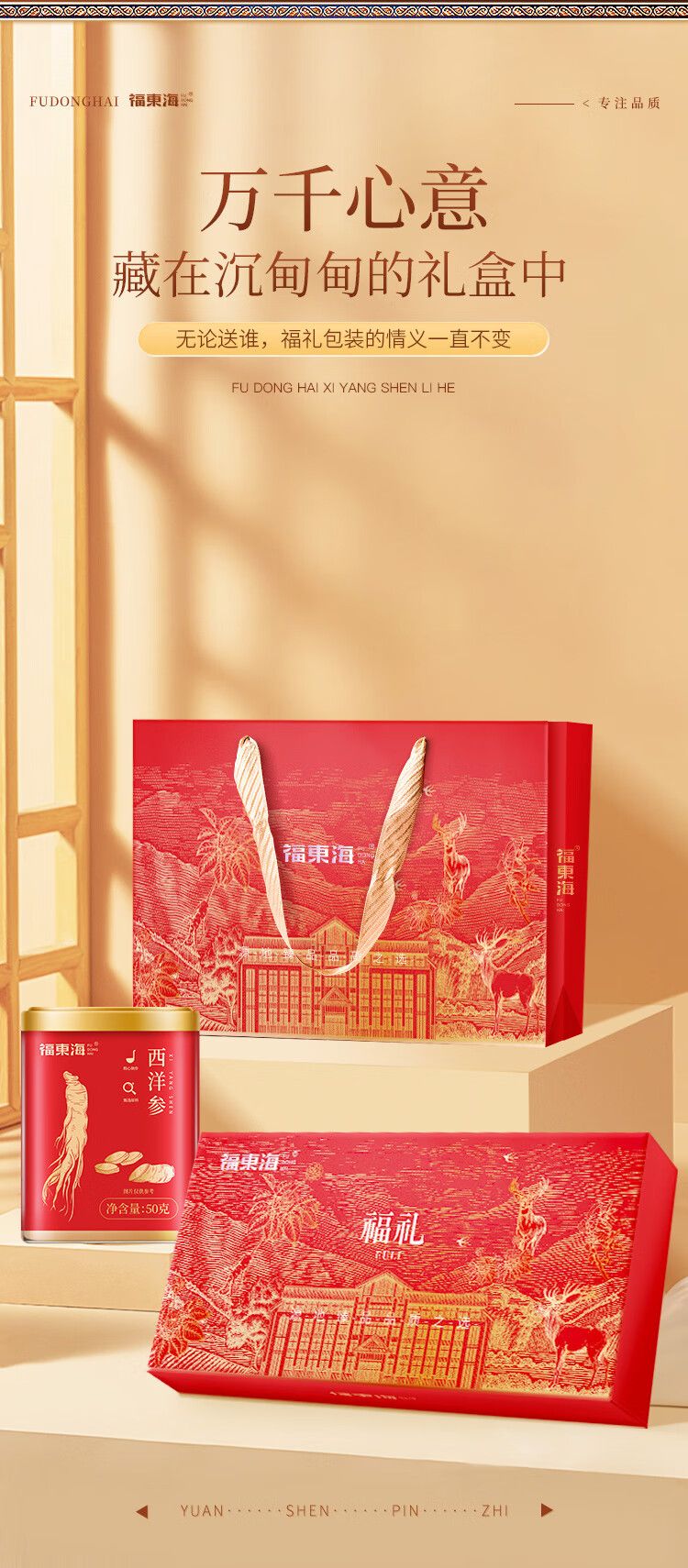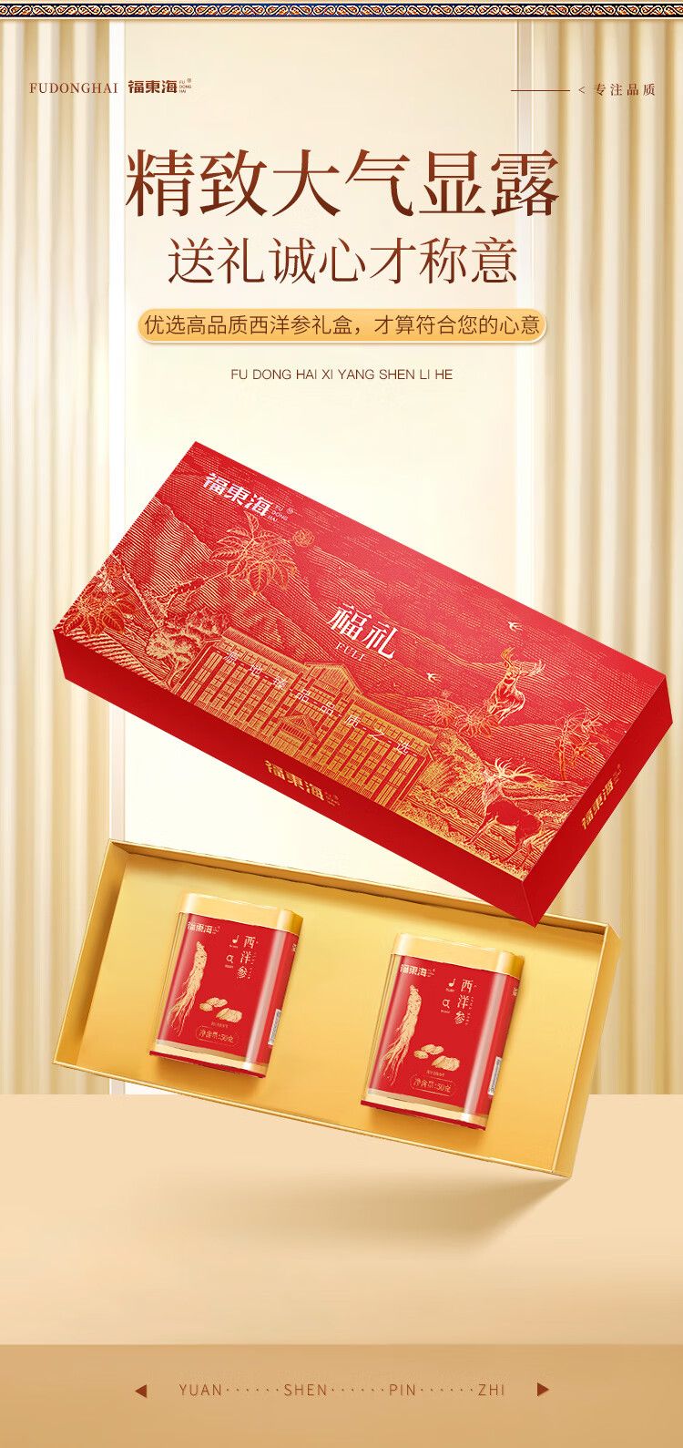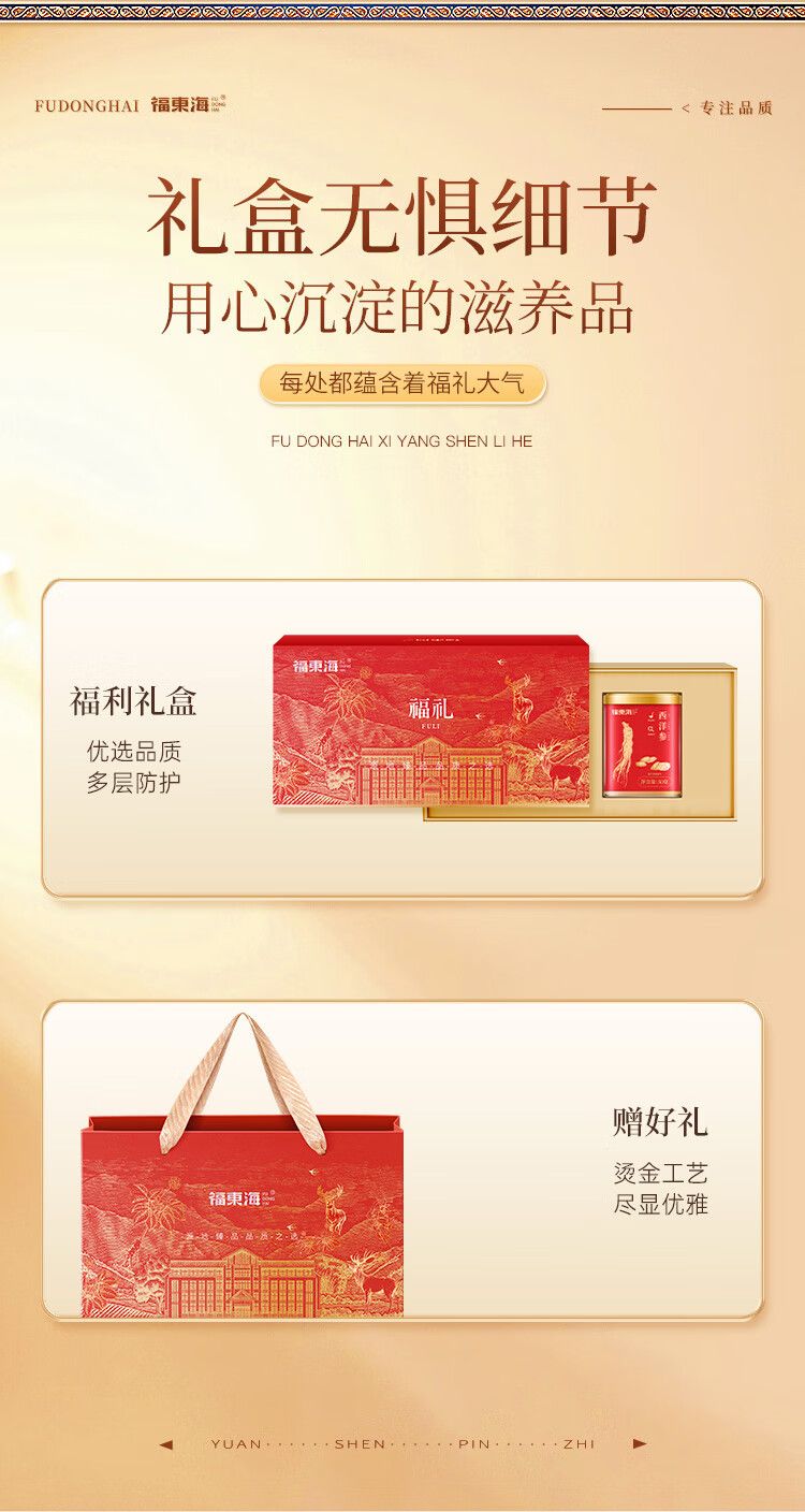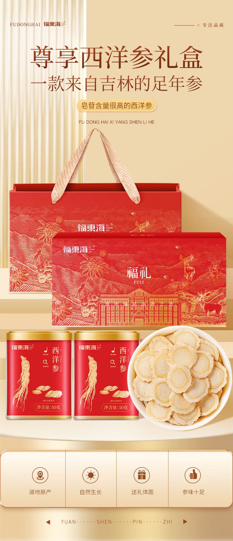 商品名称:【福东海】西洋参(1.0-1.2)100克/盒(50克*2罐)