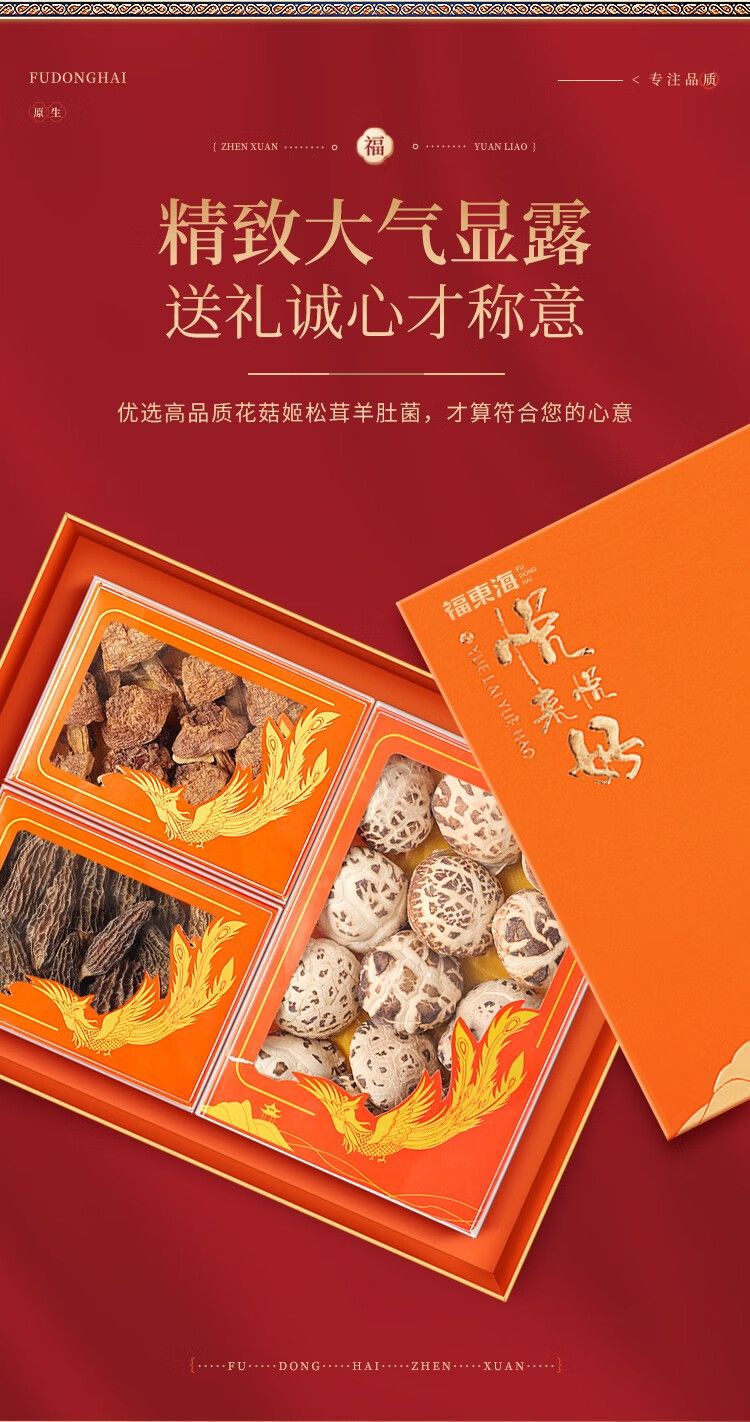 【福东海】花菇姬松茸羊肚菌三拼礼盒235克/盒(花菇160克(大盒)+羊肚菌25克(小盒)+姬松茸50克(小盒)