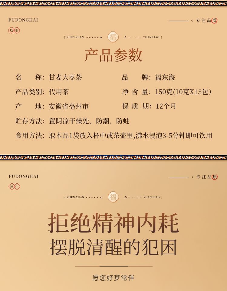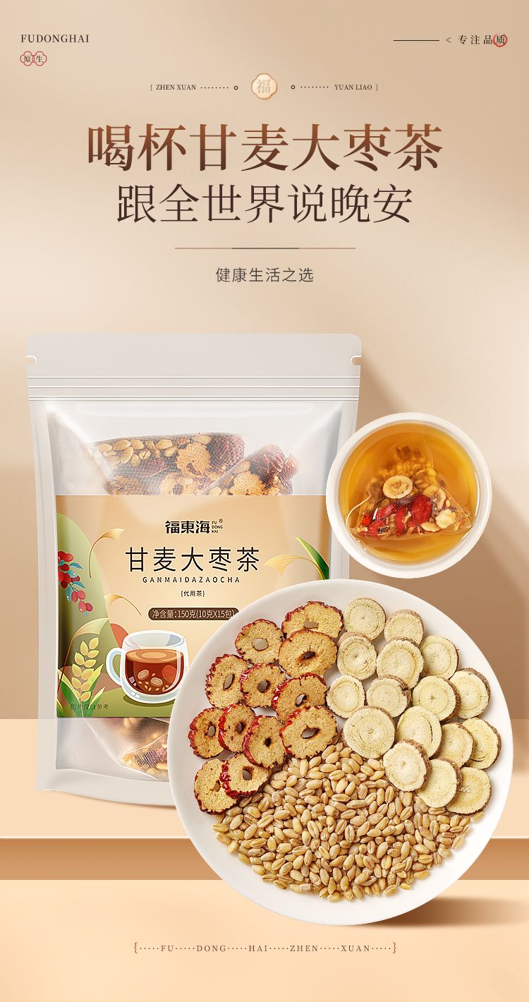 商品名称:【福东海】甘麦大枣茶150克(10克*15包)/袋