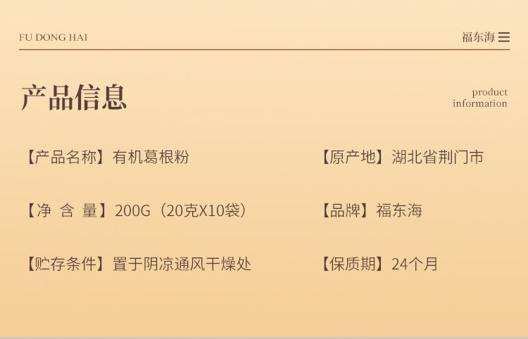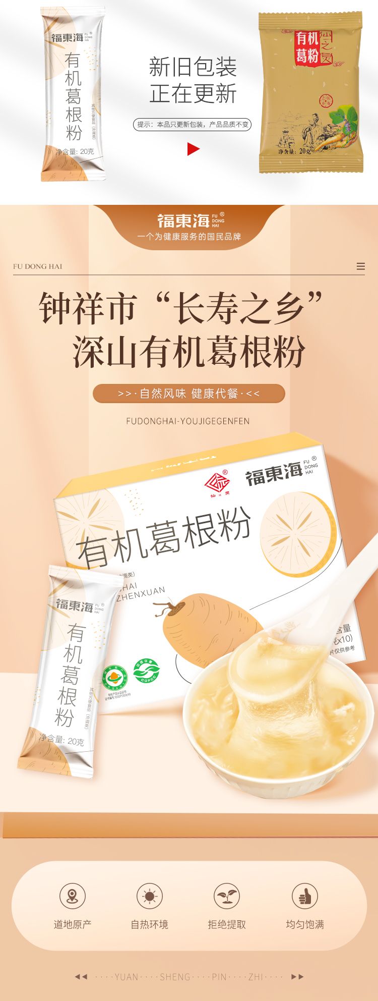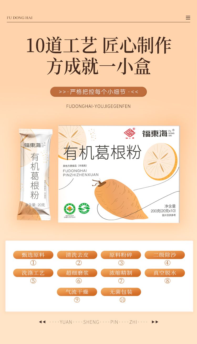商品名称:【福东海】有机葛根粉200克(20克*10袋)/盒