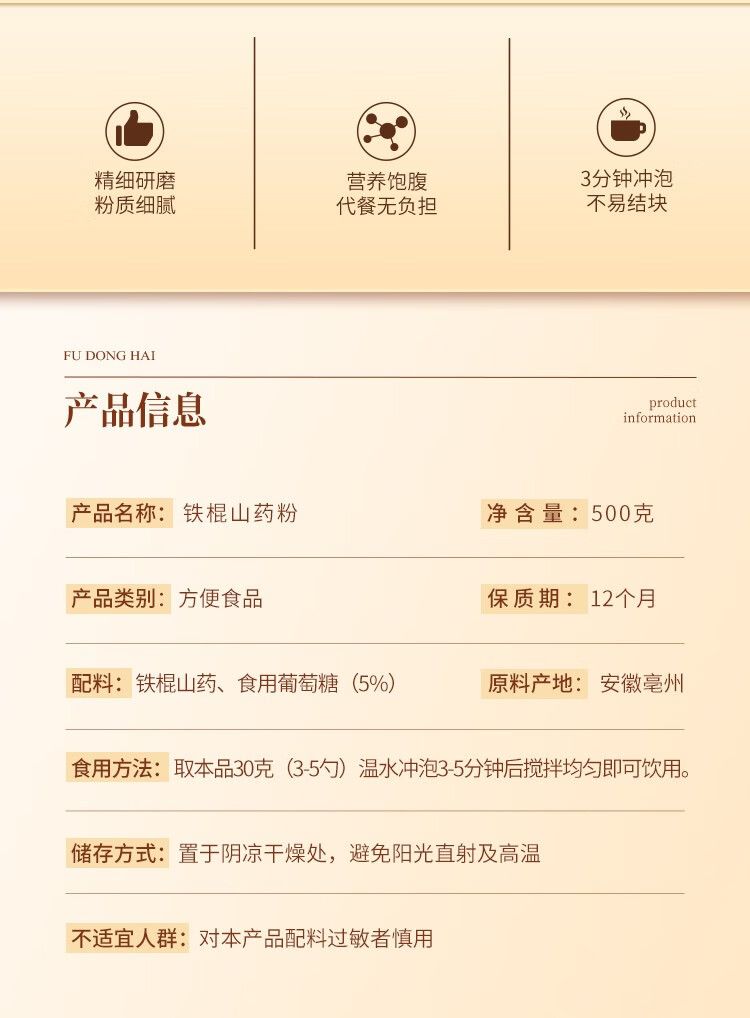 商品名称:【福东海】铁棍山药粉500克/瓶(葡萄糖款)