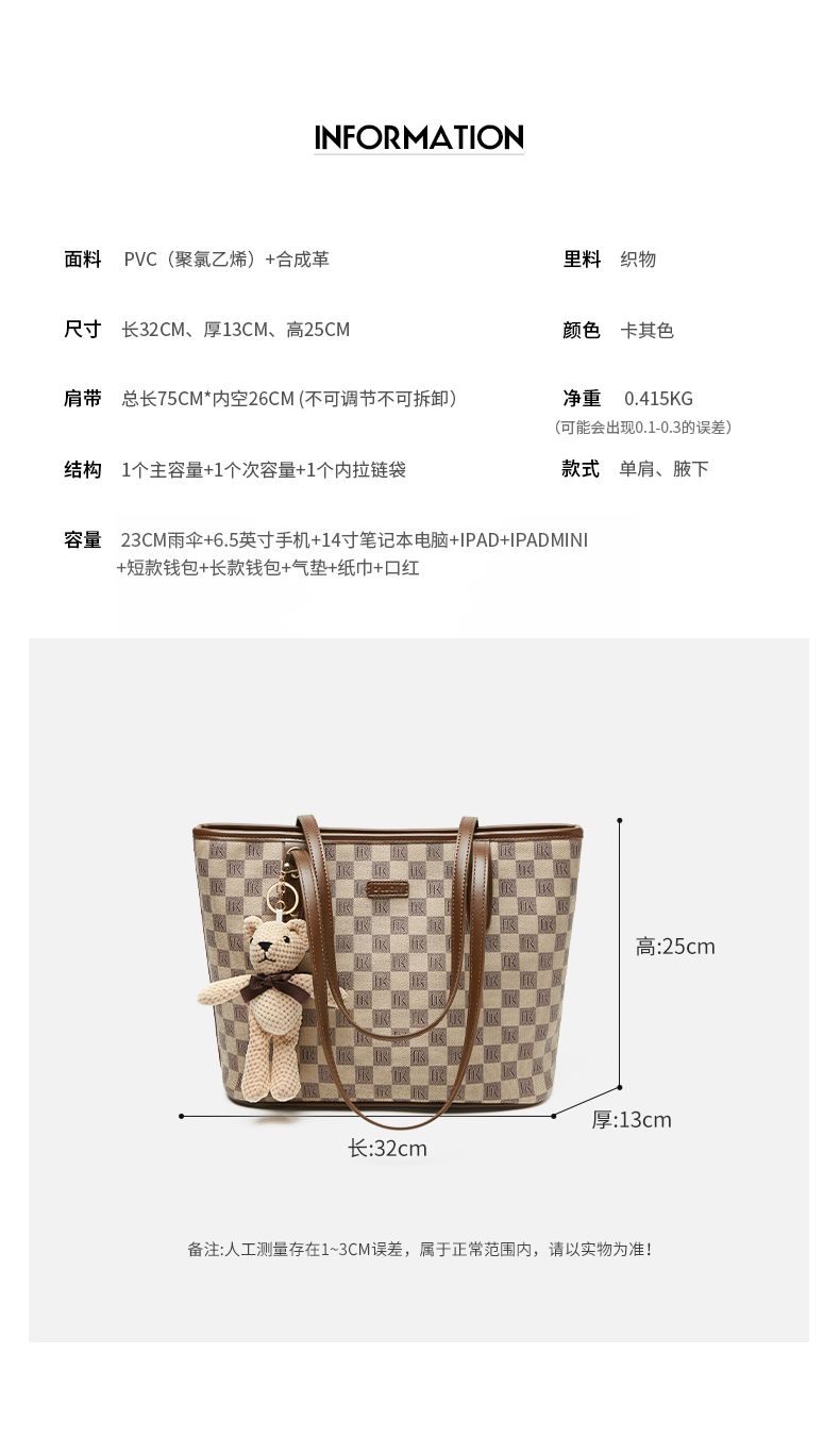 商品名称:纳兰杜女士2025新款包包小众时尚大容量单肩包女学生上课通勤托特大包61244063815