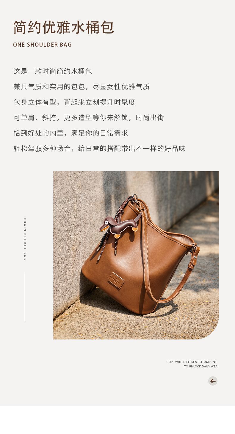 商品名称:纳兰杜2025夏季新款水桶包时尚简约高级感单肩包大容量通勤斜挎包61243059302