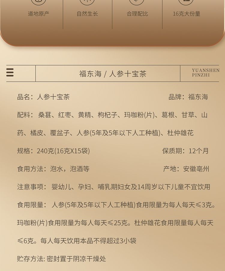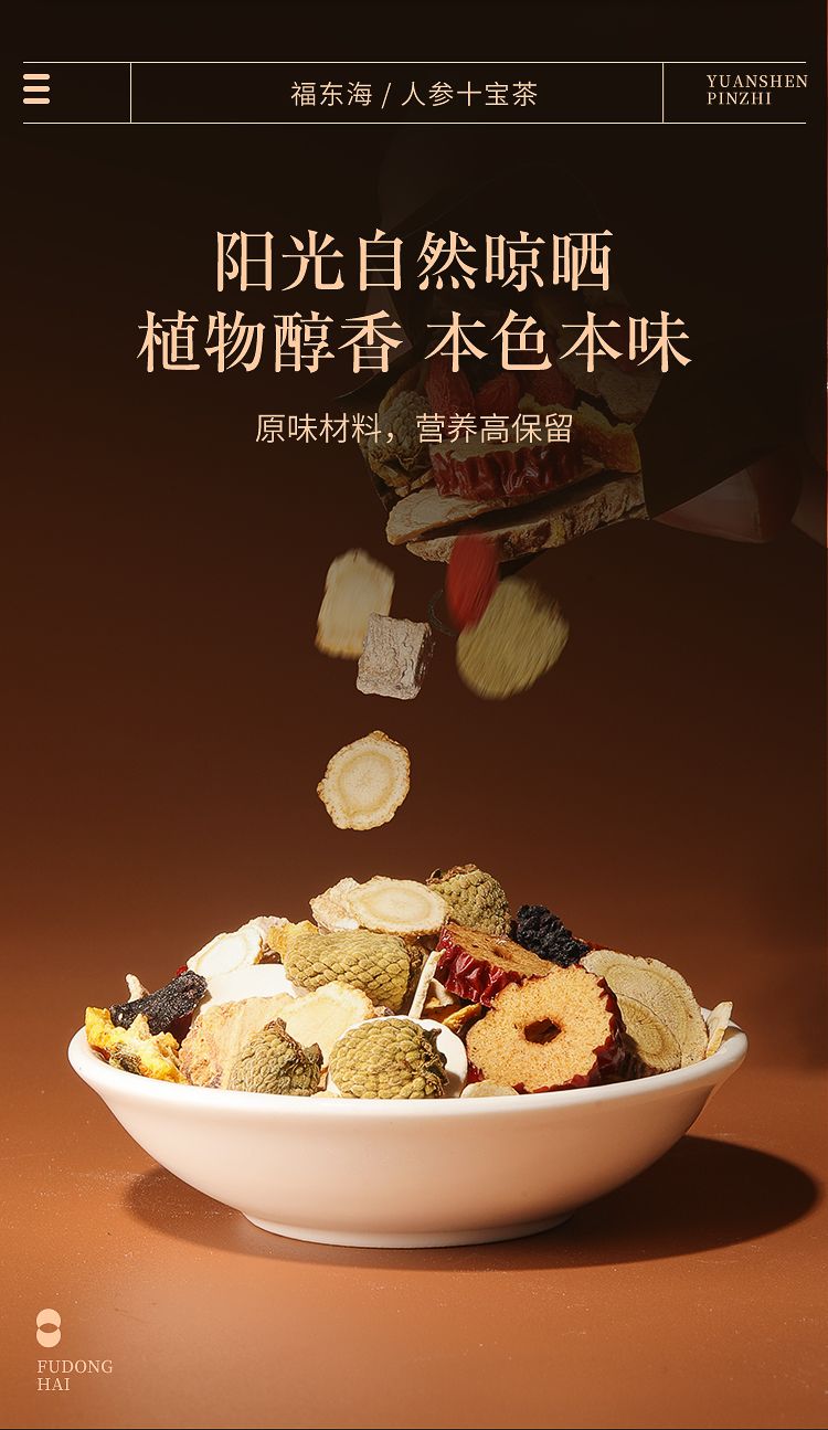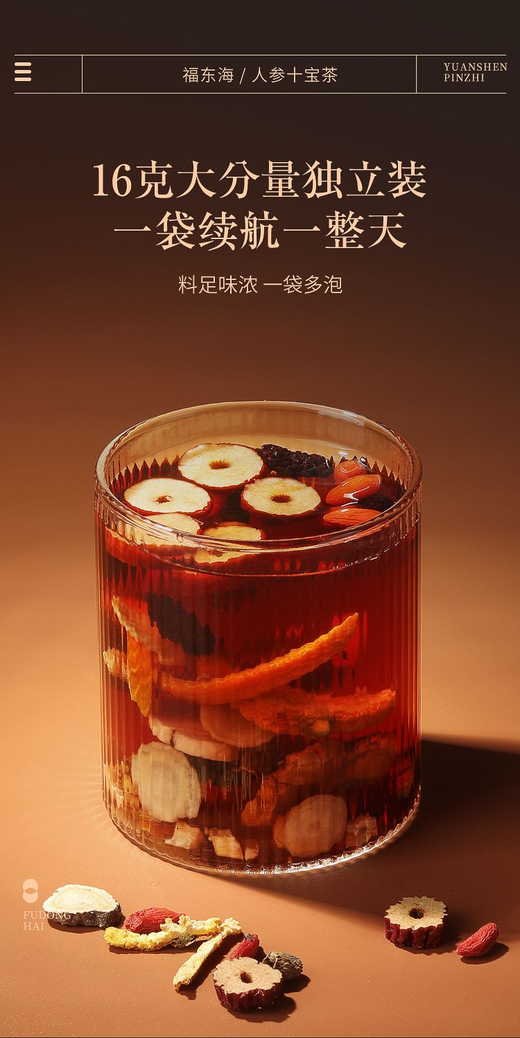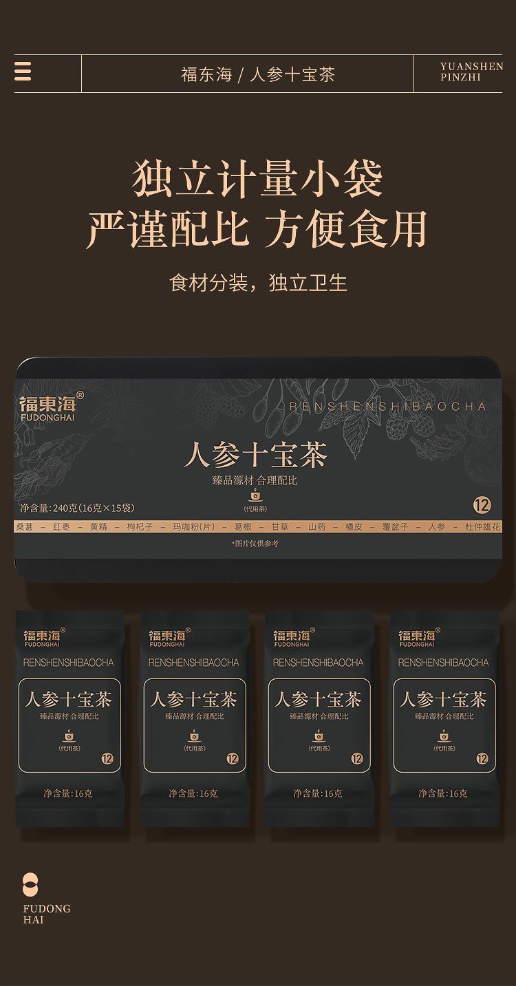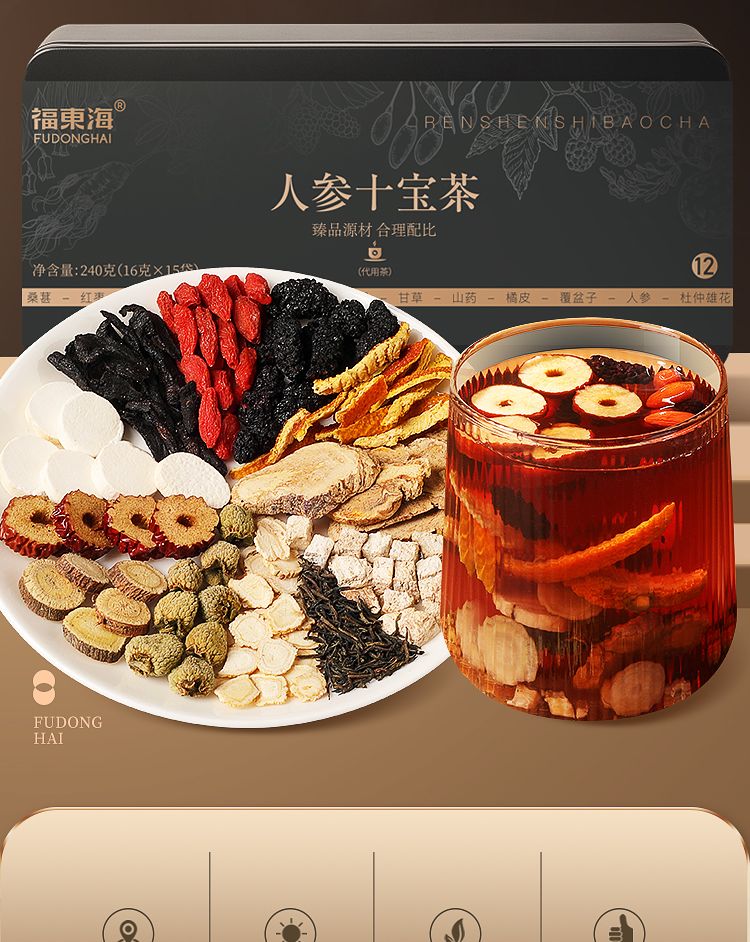 商品名称:【福东海】人参十宝茶240克(16克*15袋)/盒