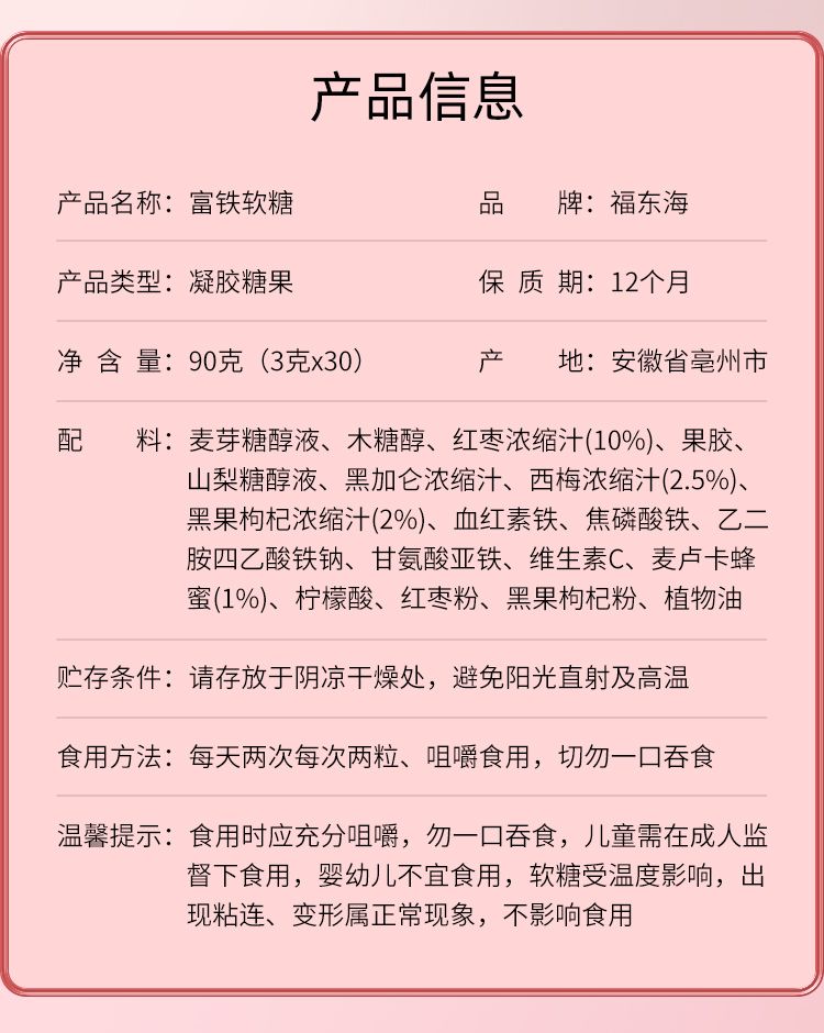 商品名称:【福东海】富铁软糖90克(3g*30克 )/盒