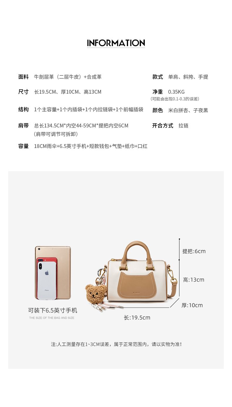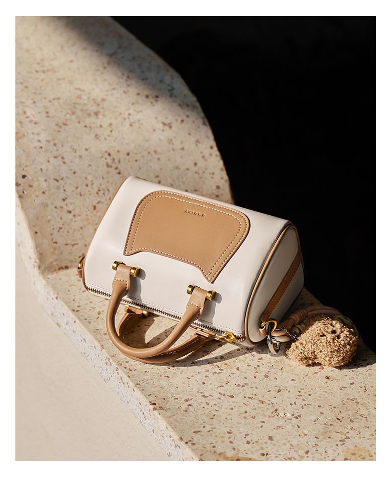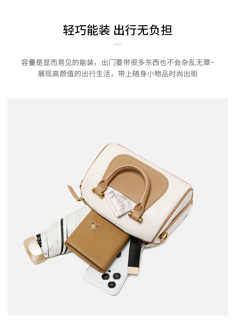 商品名称:纳兰杜2025新款拼色手提包时尚设计感真皮单肩包百搭通勤高级质感斜挎包