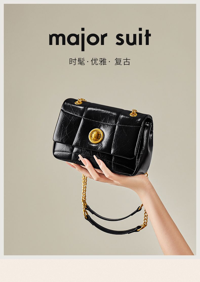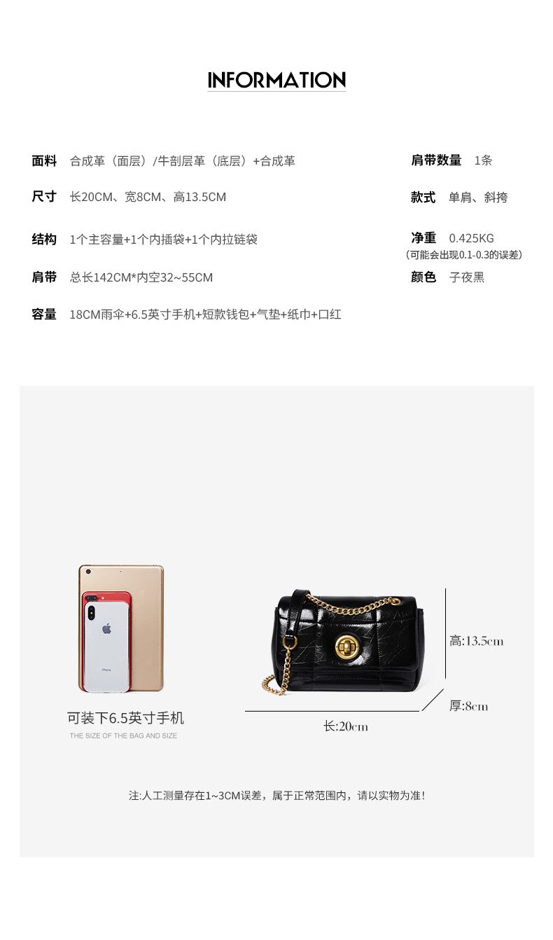 商品名称:纳兰杜春夏质感锁扣小方包2025新款时尚百搭链条包高级感单肩腋下斜挎包