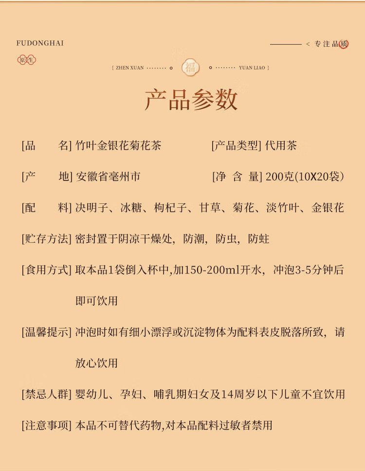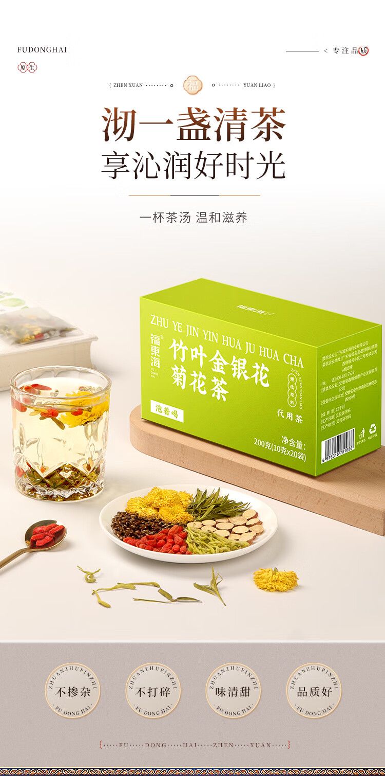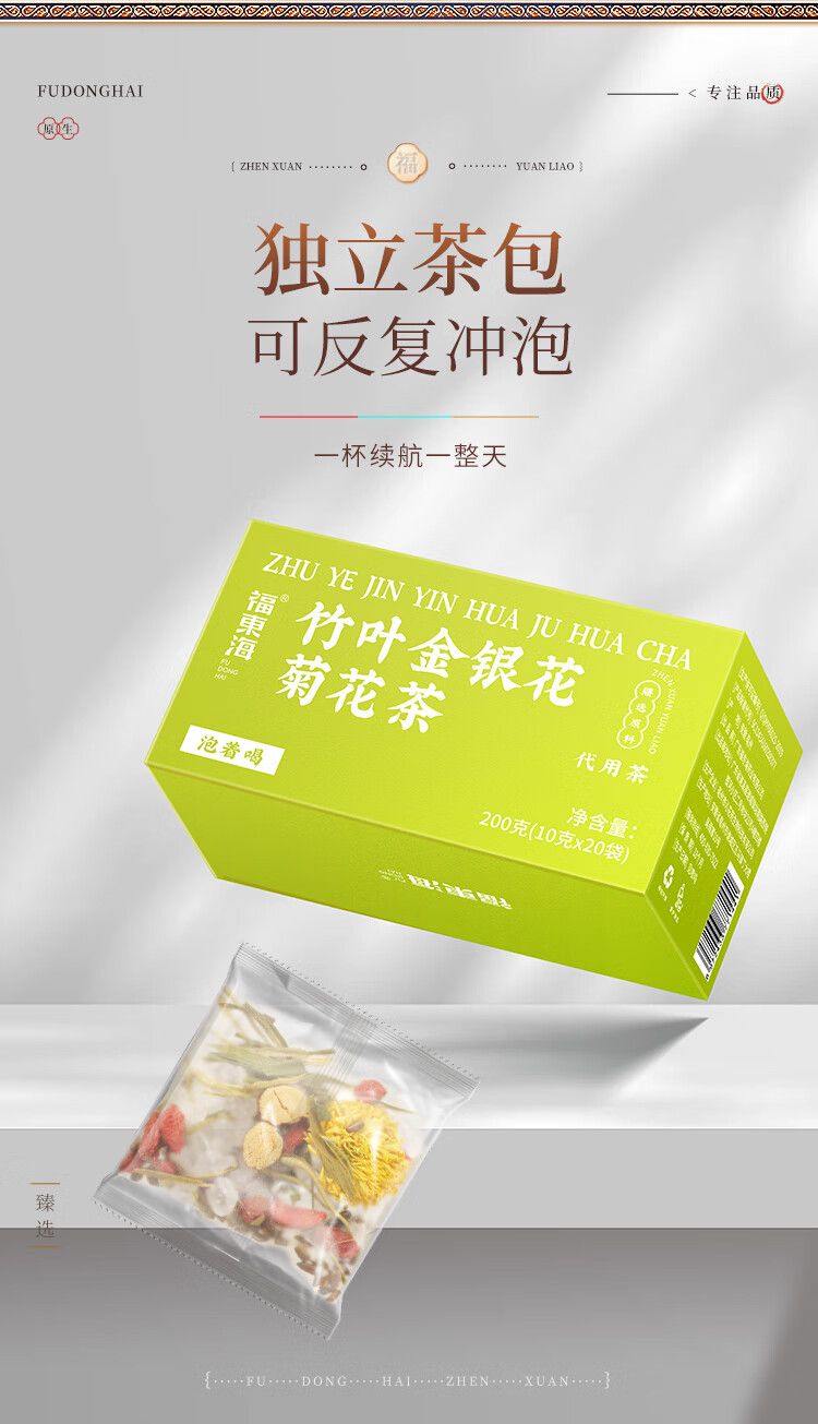 商品名称:【福东海】竹叶金银花菊花茶200克(10克*20袋)/盒