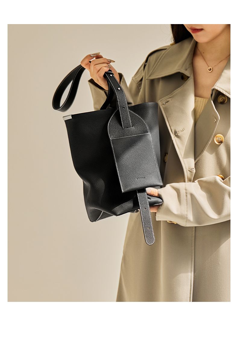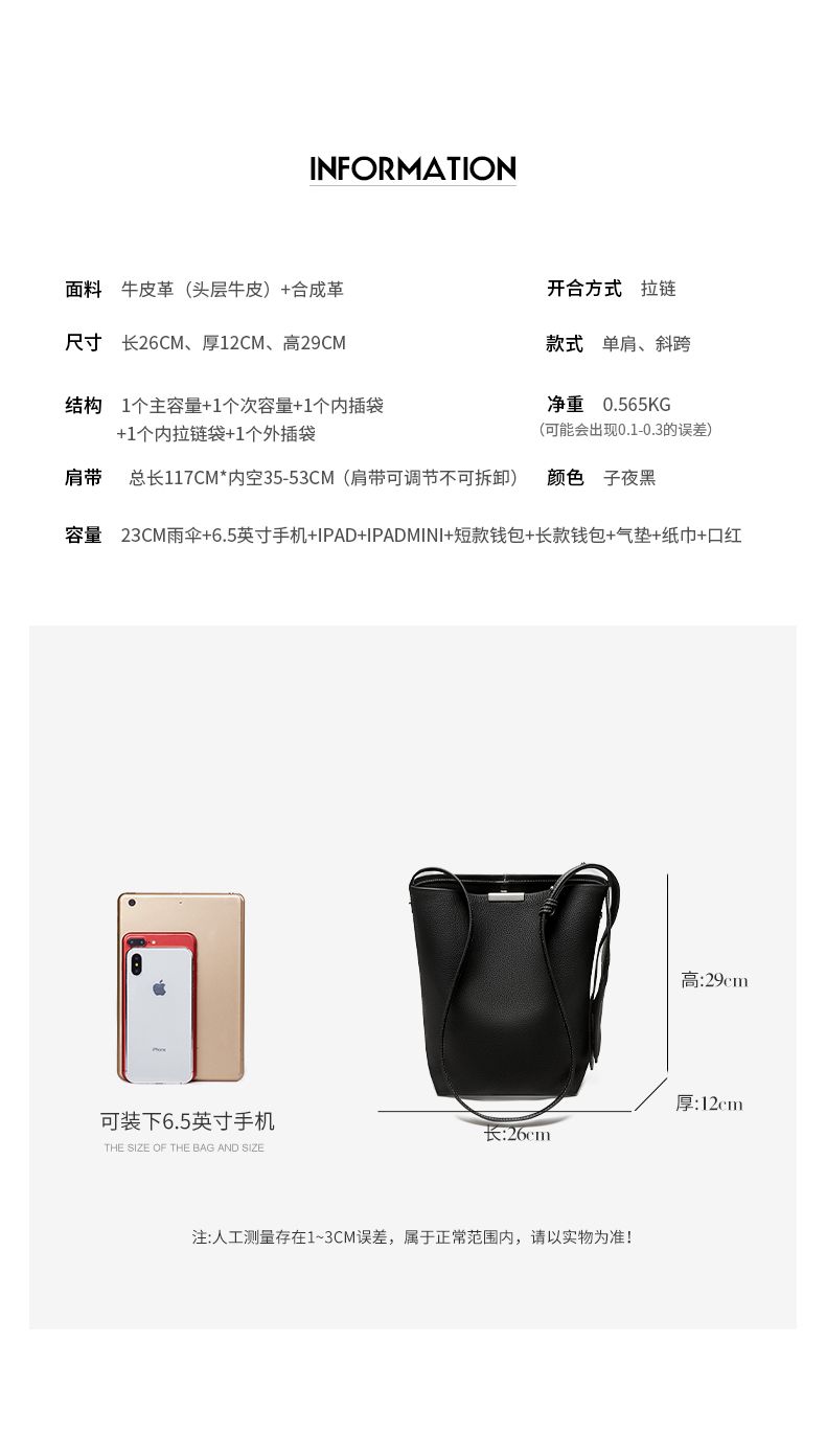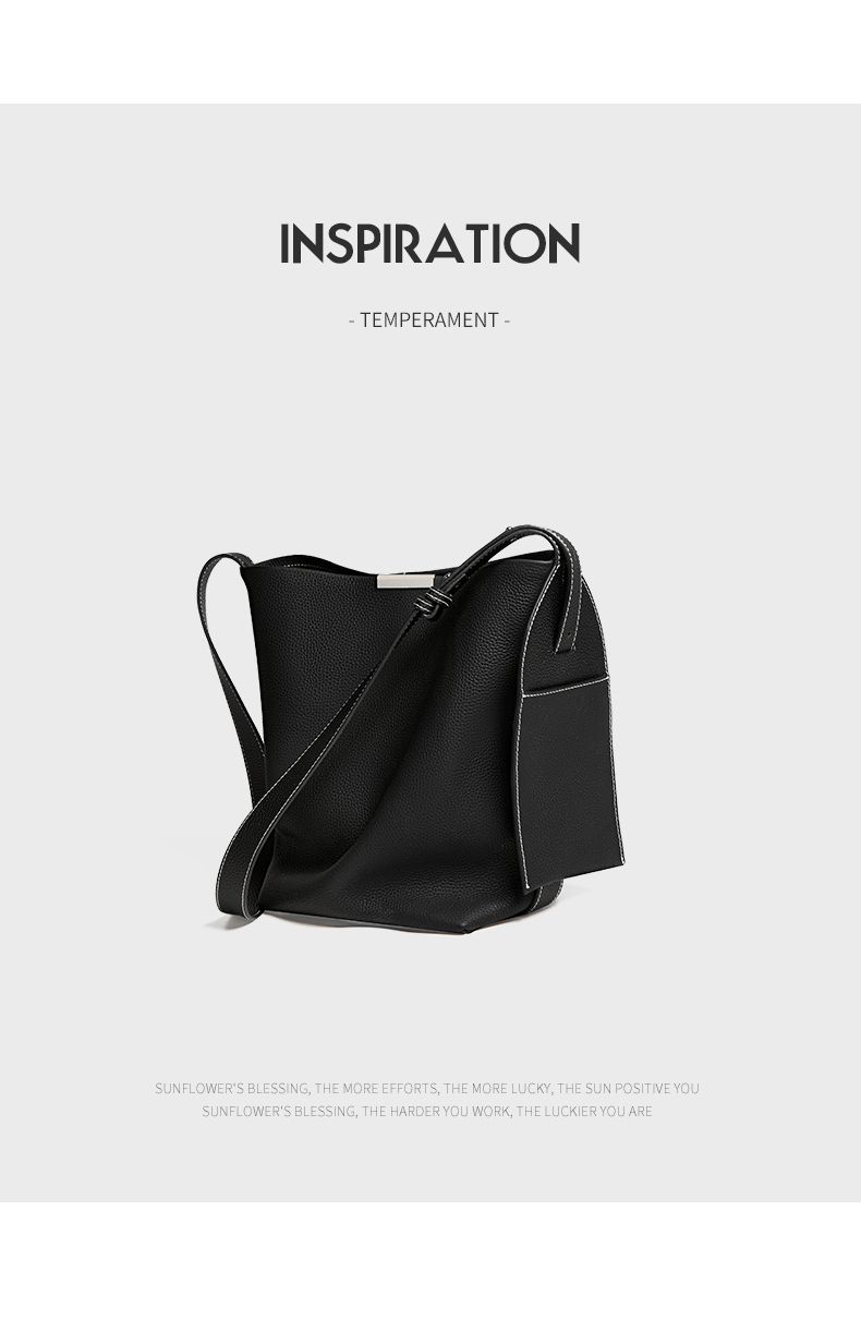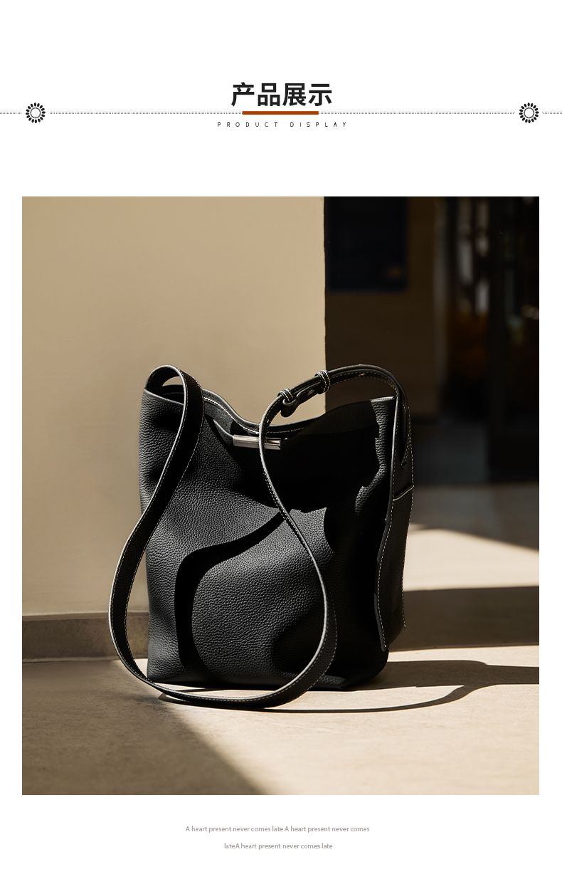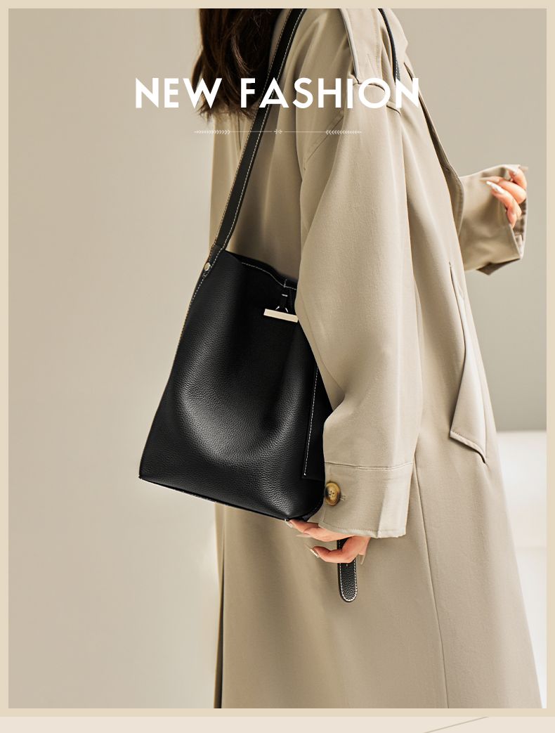 商品名称:纳兰杜2025新款小众设计感牛皮水桶包轻奢真皮女包时尚大容量通勤女包