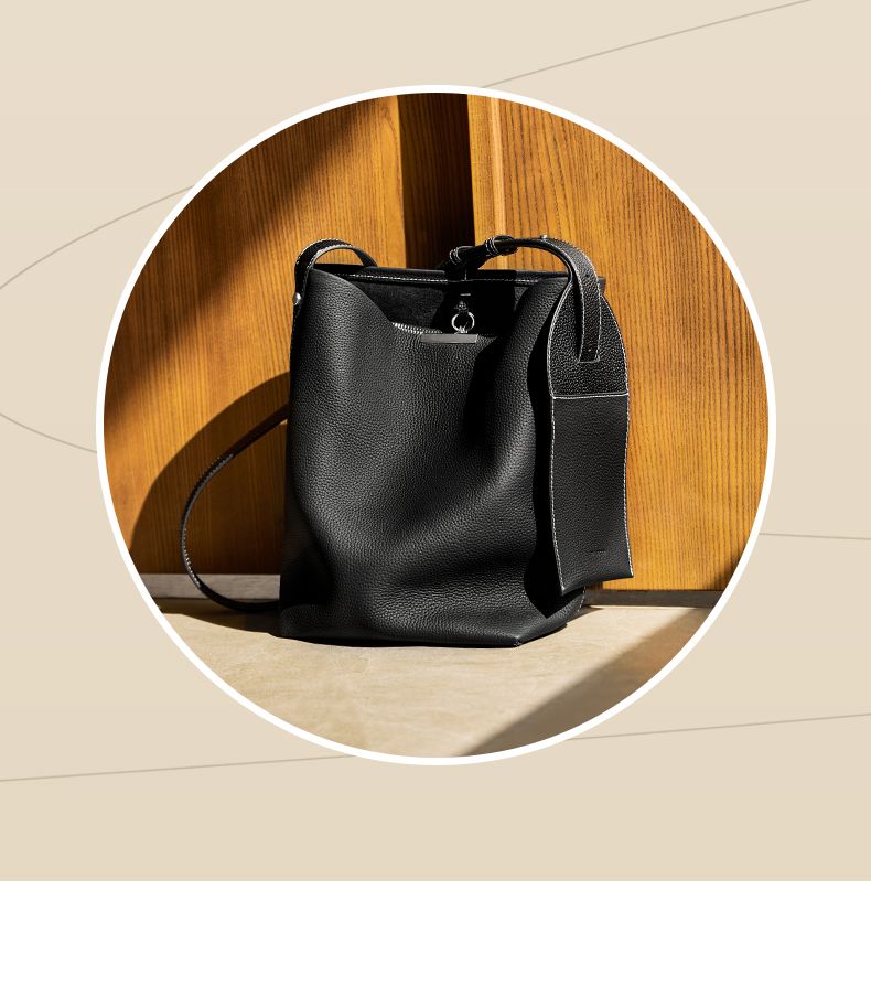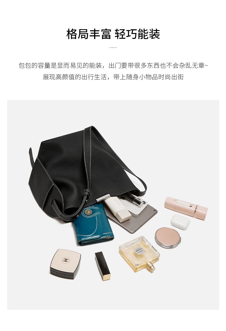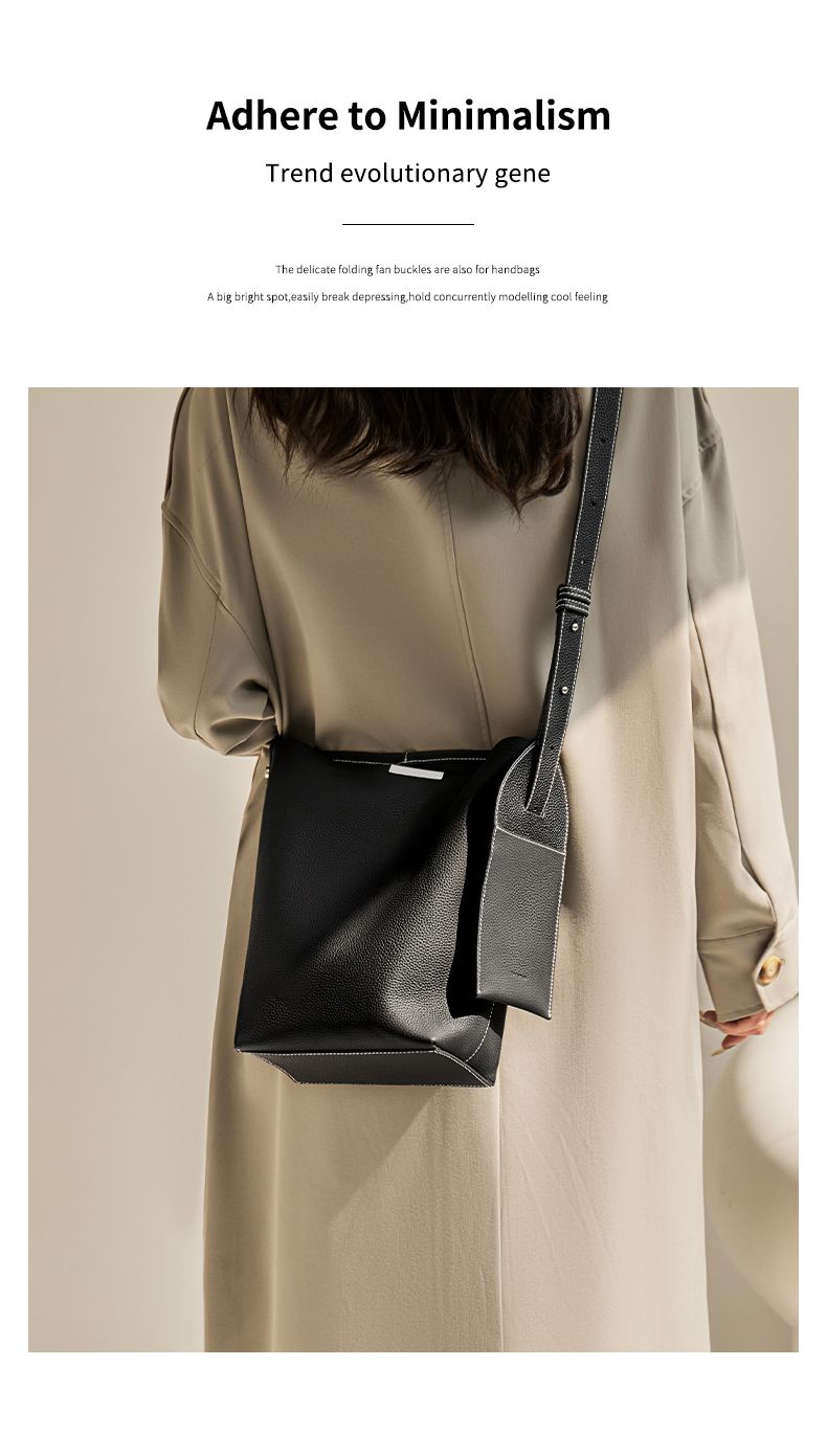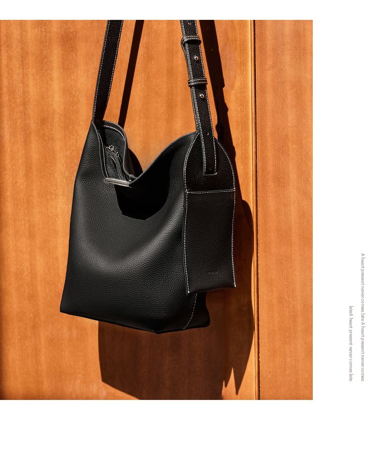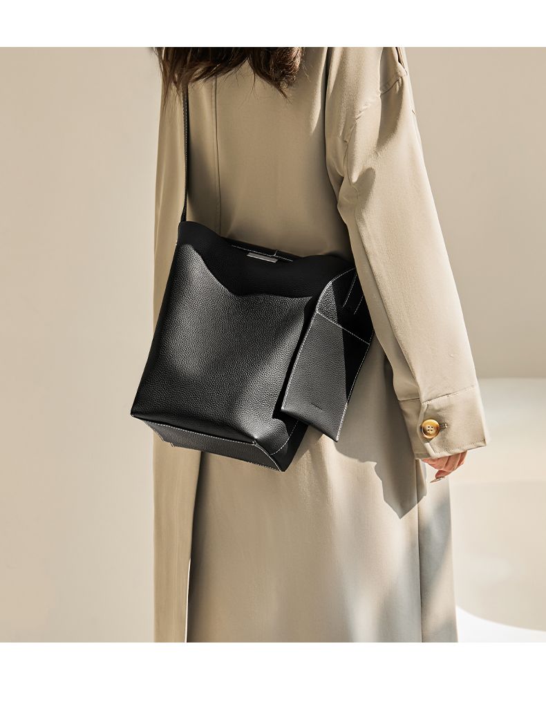 商品名称:纳兰杜2025新款小众设计感牛皮水桶包轻奢真皮女包时尚大容量通勤女包