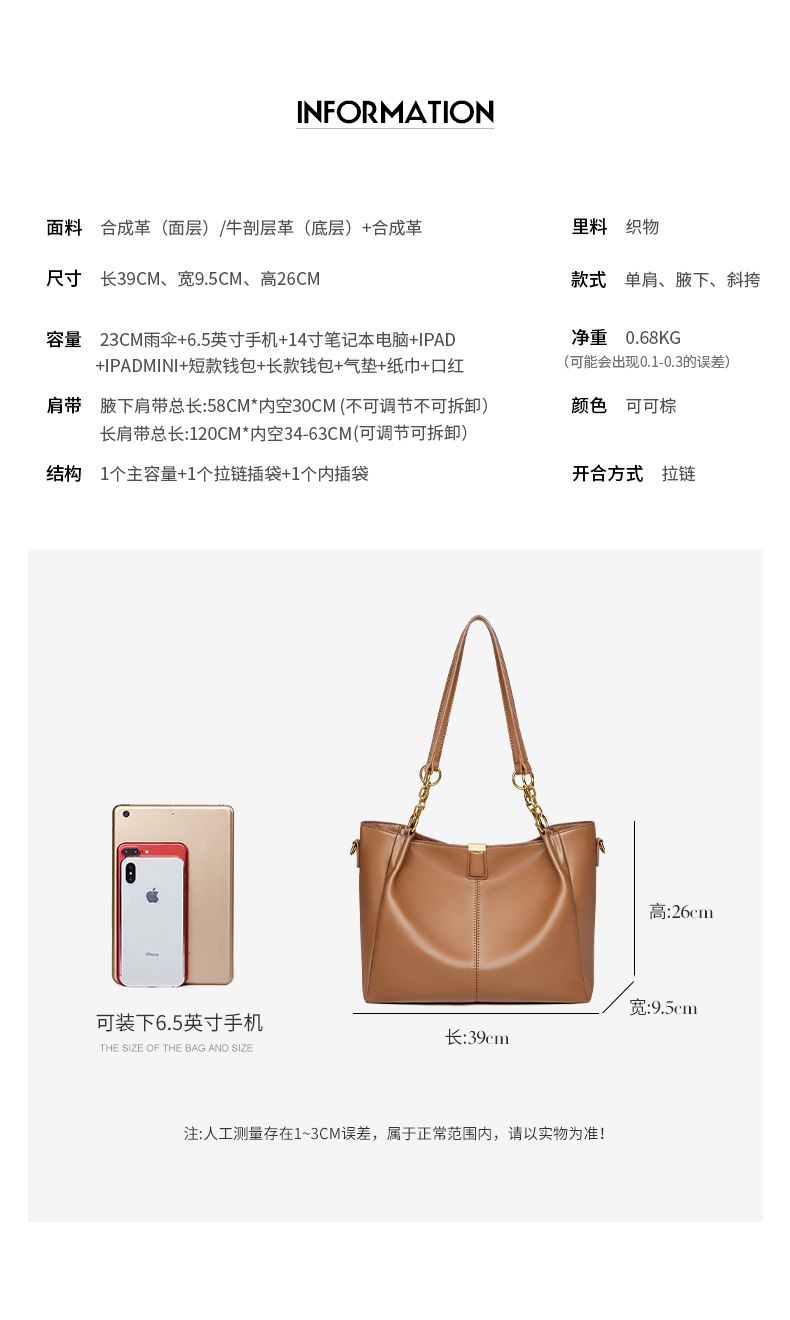 商品名称:纳兰杜女士包包2025春夏新款牛皮托特包小众时尚单肩包大容量通勤手提包
