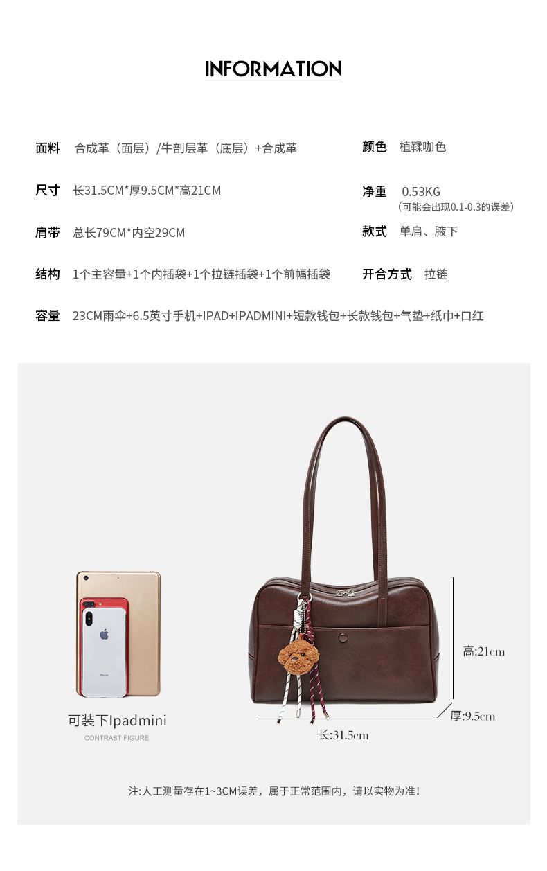 商品名称:纳兰杜2025新款牛皮单肩包时尚复古大容量腋下包女上班通勤手提真皮大包61244064617