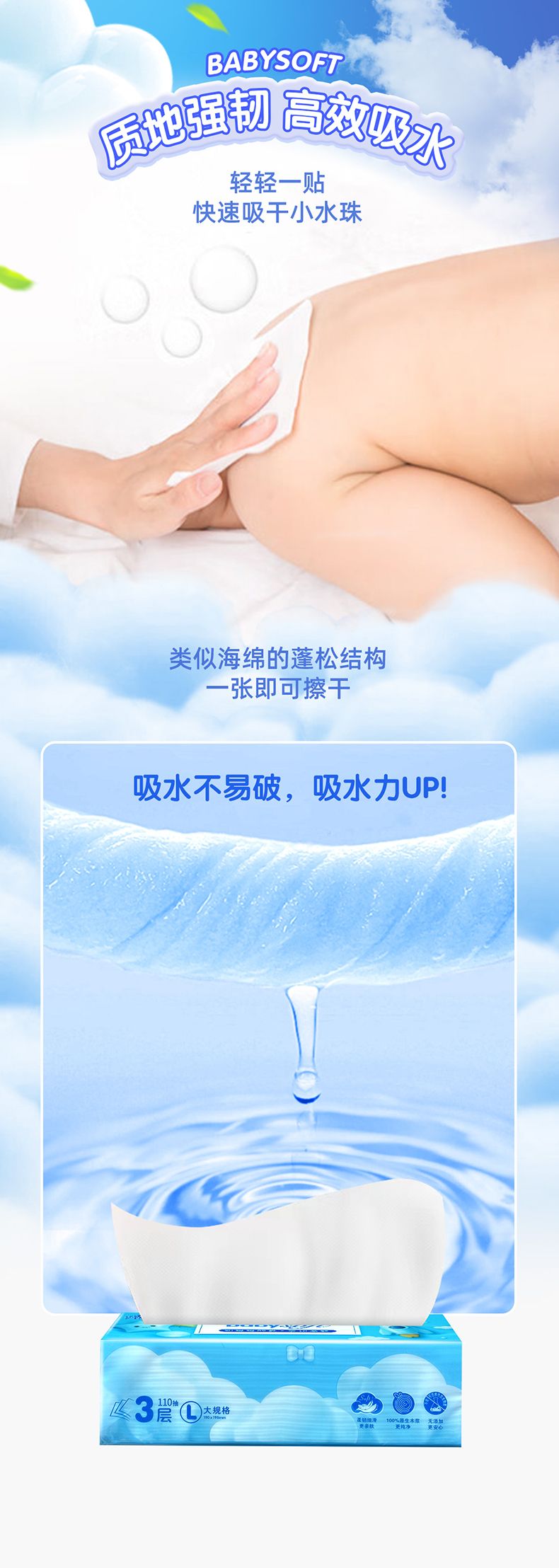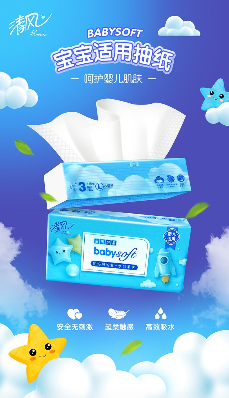 清风 宝贝亲柔L号抽纸 3包*1提