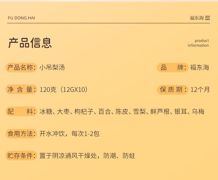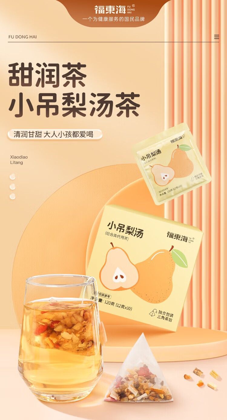 商品名称:【福东海】竹蔗茅根雪梨茶120克(12克*10包)/盒