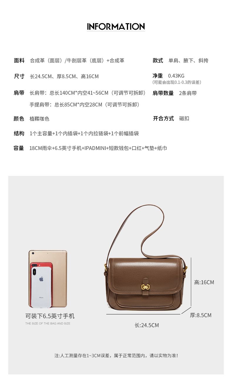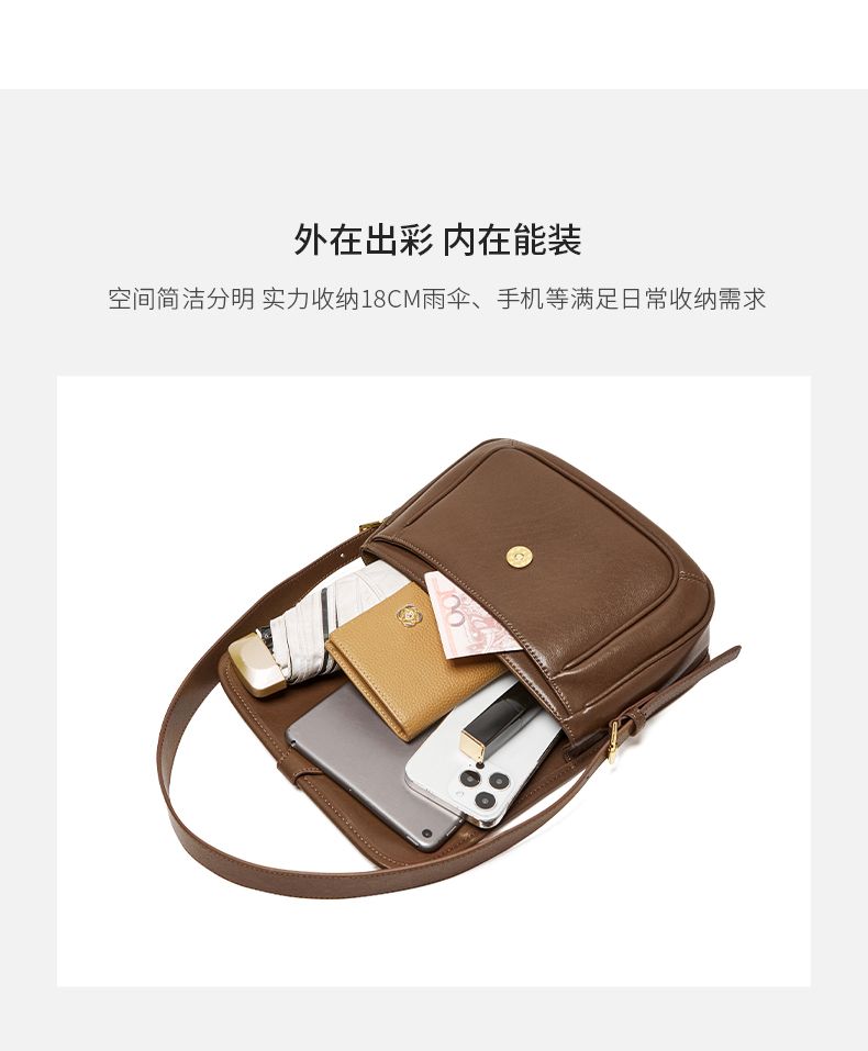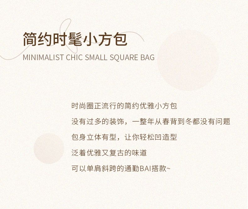 商品名称:纳兰杜包包2025新款质感植鞣皮小方包时尚设计感牛皮豆腐包女通勤单肩包61244062517