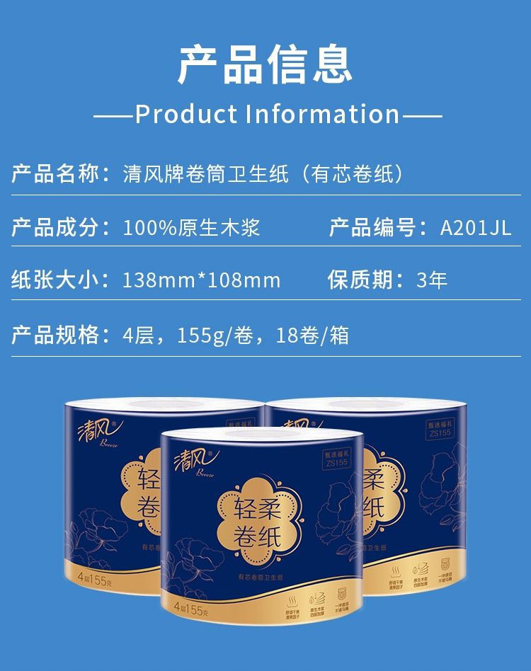 商品名称:清风 卷筒卫生纸(有芯卷纸)155g*18卷*1箱
