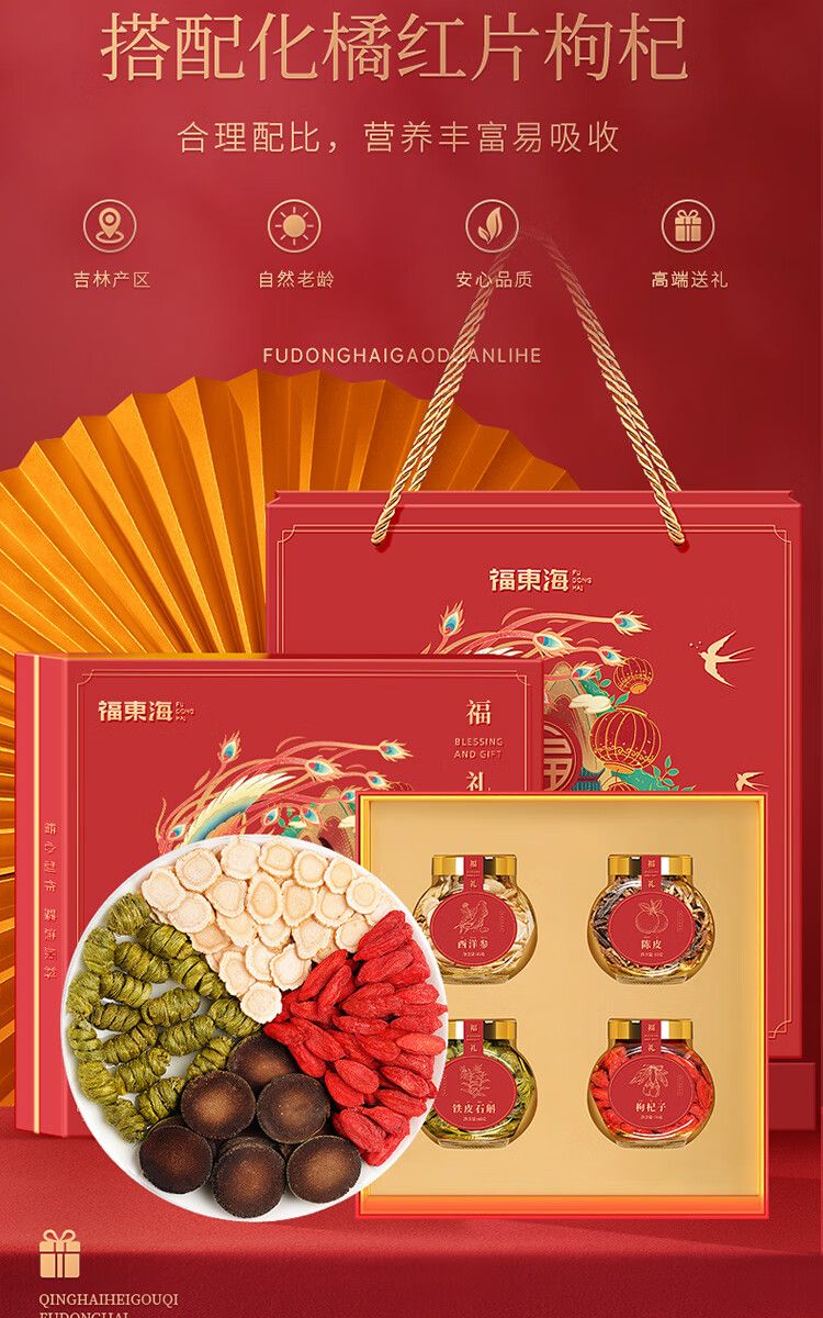 商品名称:【福东海】福凤-西洋参+枸杞+石斛化+橘红综合礼盒235克/盒