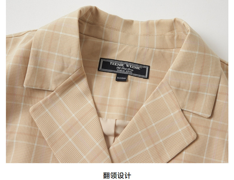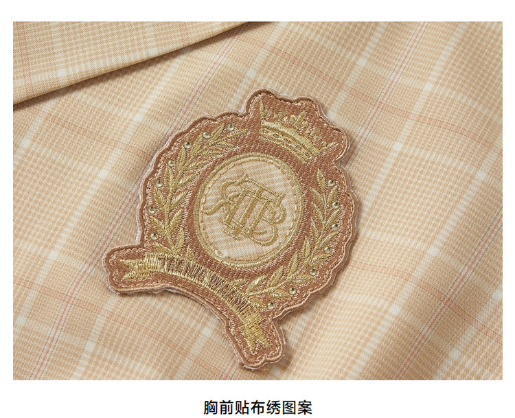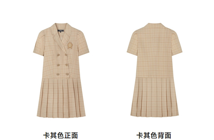 商品名称:连衣裙女夏季学院风双排扣复古西装领短袖百褶裙子女 410369