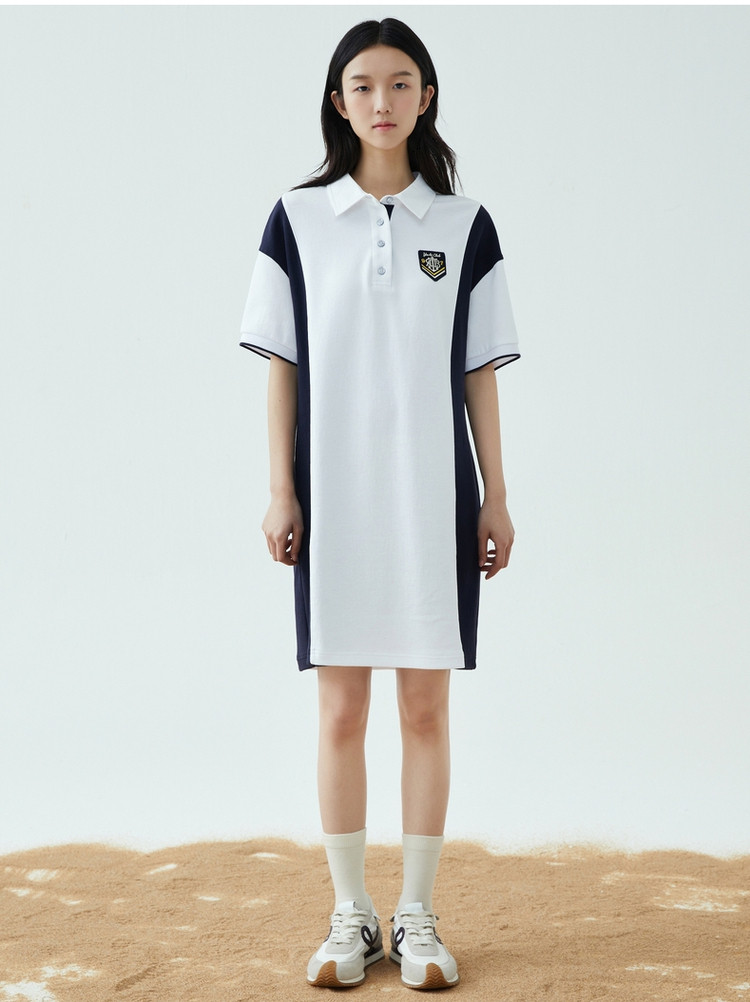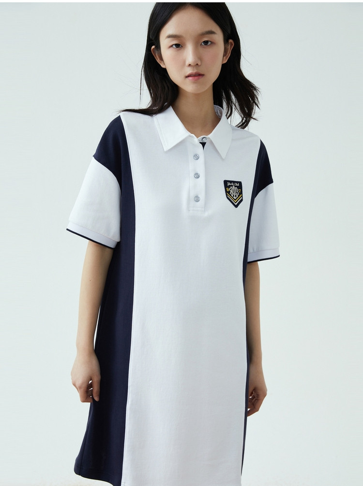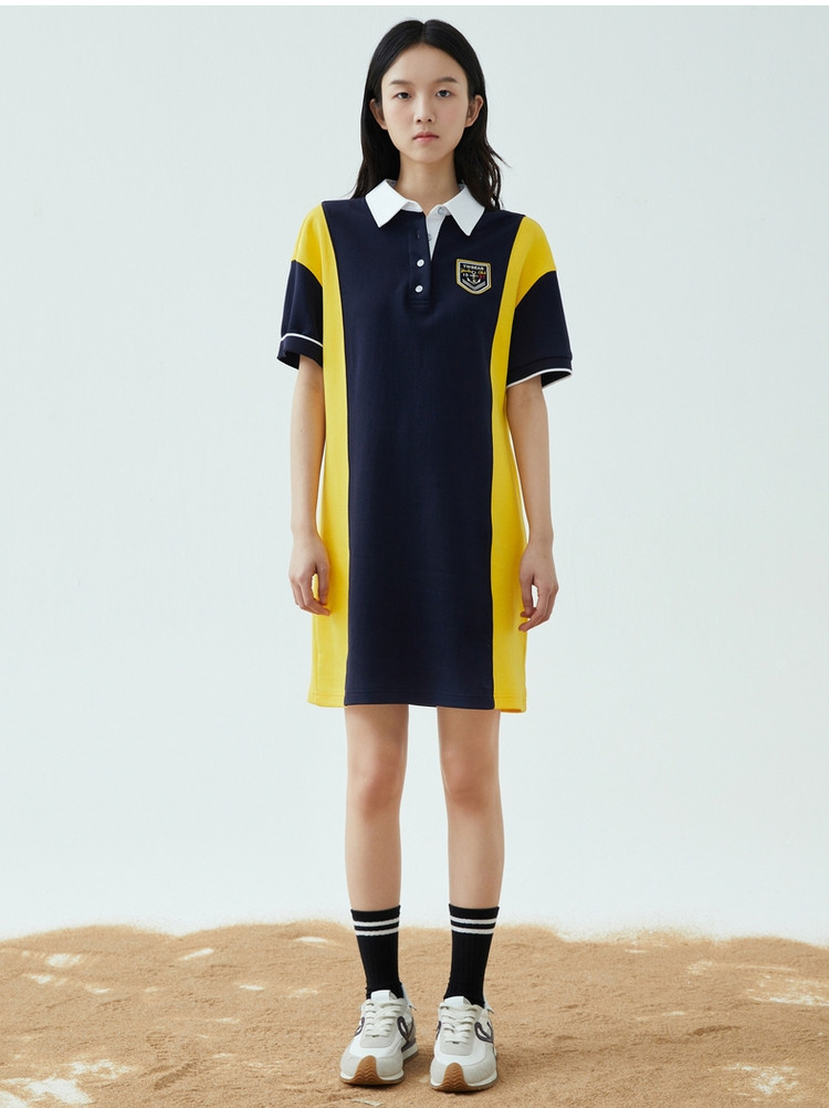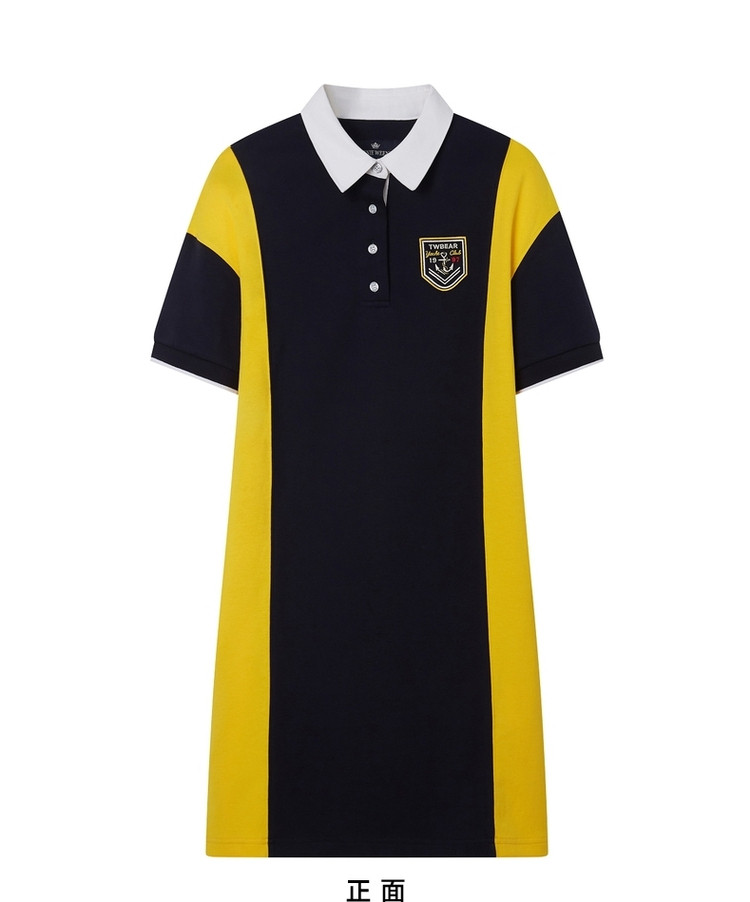 【针织裙】连衣裙气质高级感POLO裙v字撞色连衣裙 230401