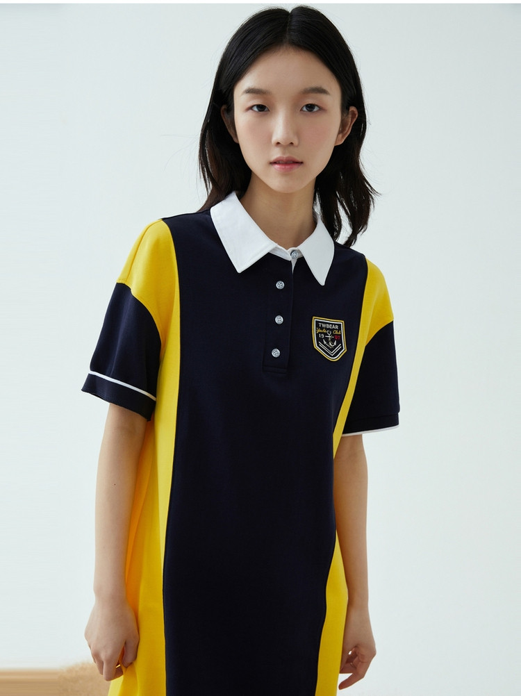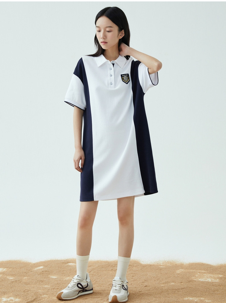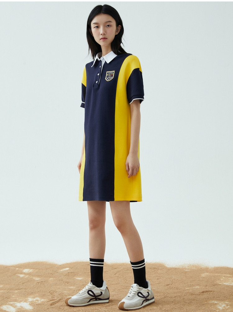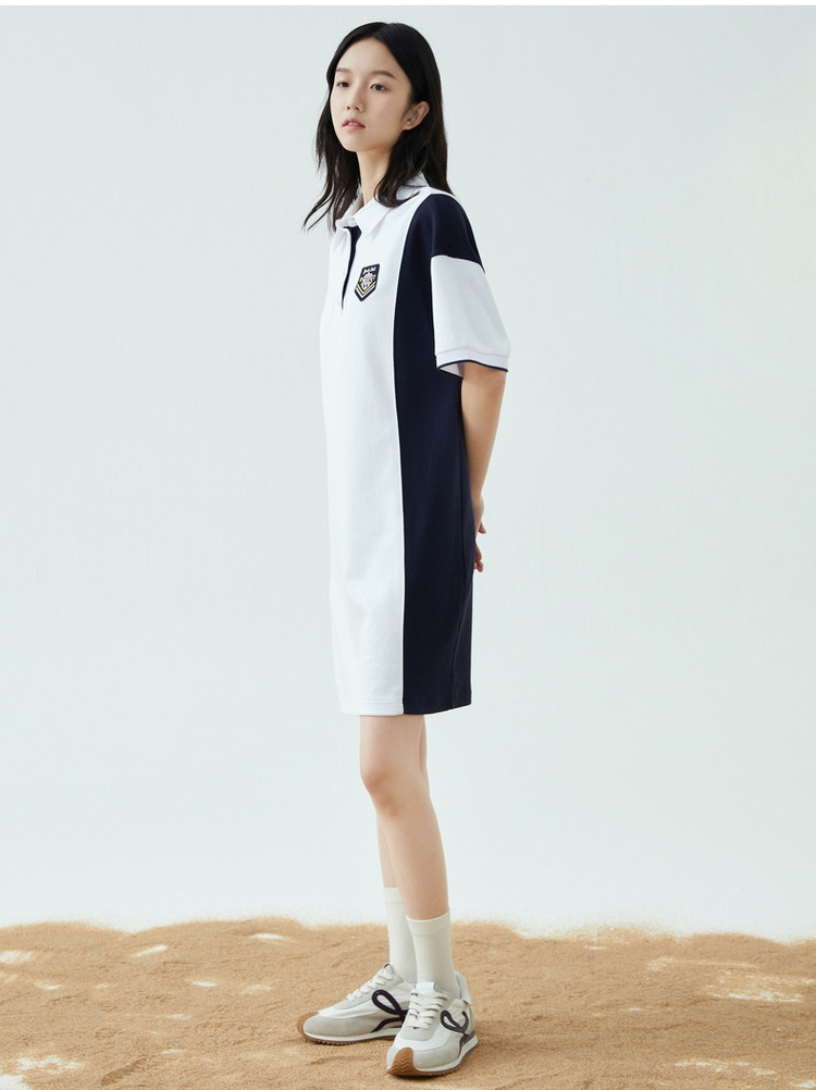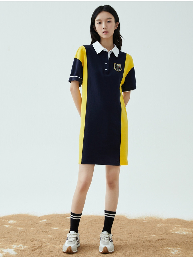商品名称:小熊连衣裙女拼色撞色设计感直筒连衣裙 613633