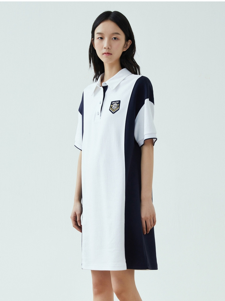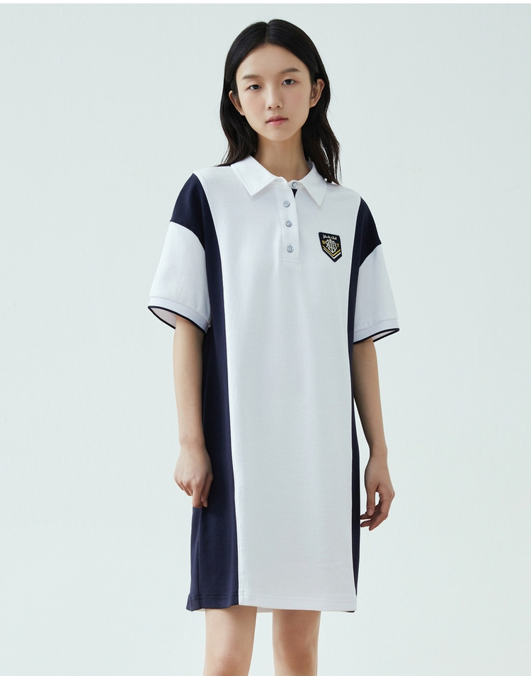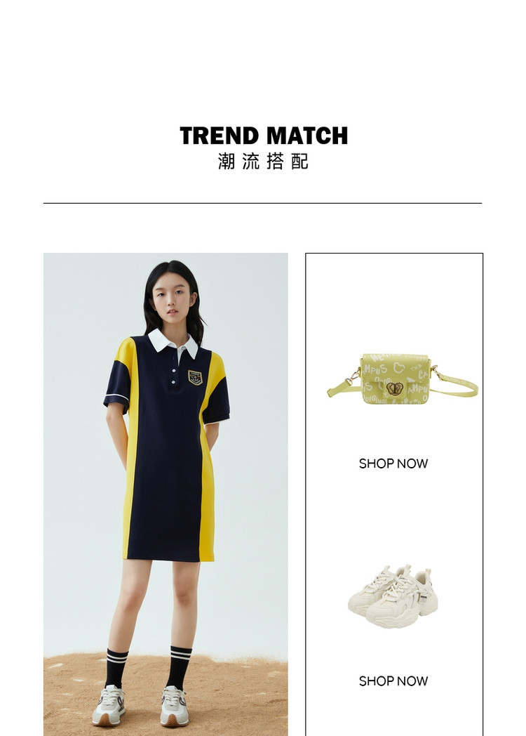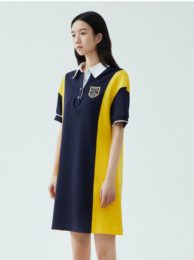 商品名称:小熊连衣裙女拼色撞色设计感直筒连衣裙 613633