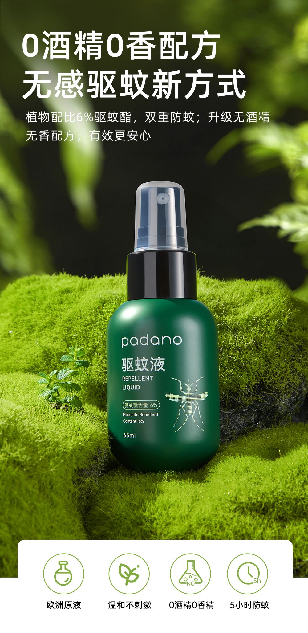 商品名称:帕达诺驱蚊喷雾 新款【0酒精0香精】驱蚊液65ml