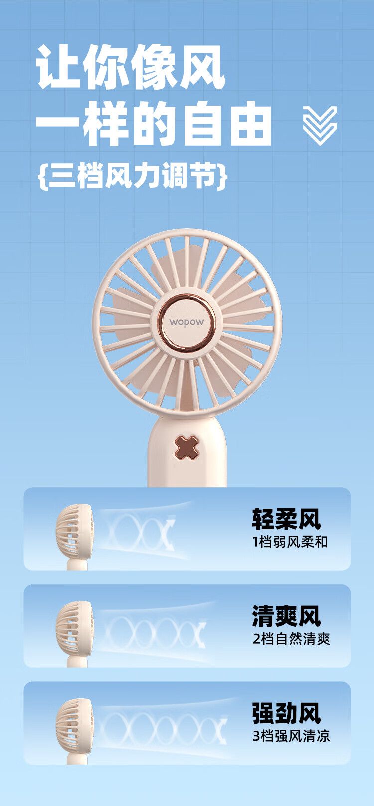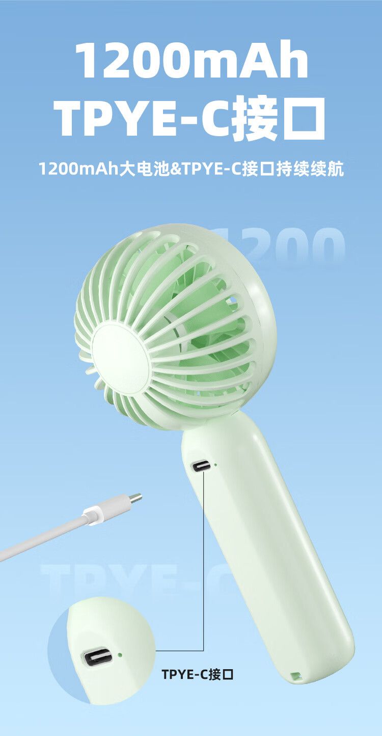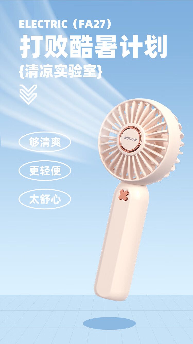 沃品手持mini小风扇FA26 随身便携式usb充电大风力办公室学生宿舍小型手拿电风扇