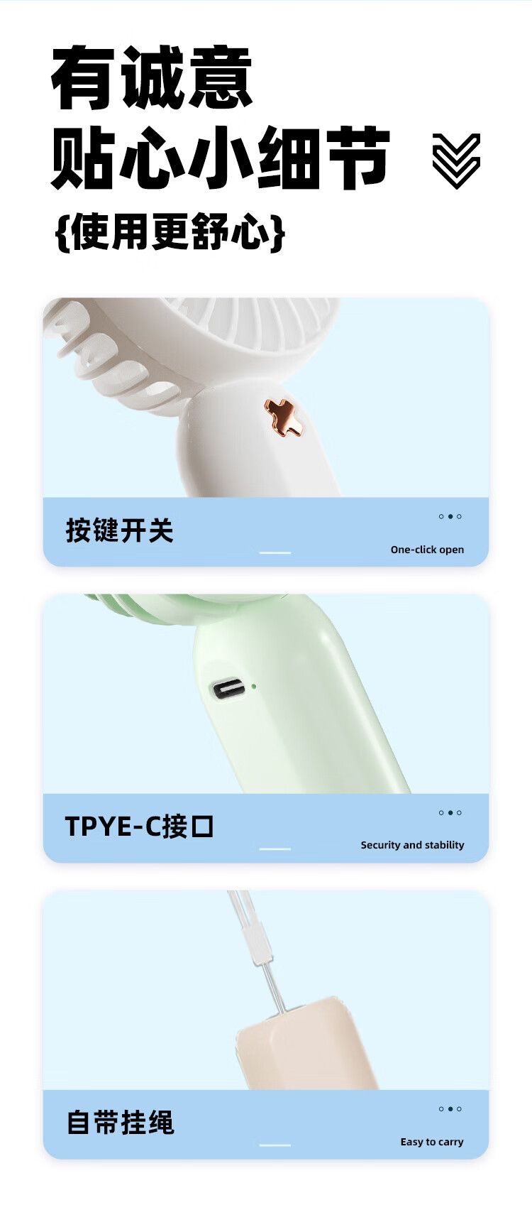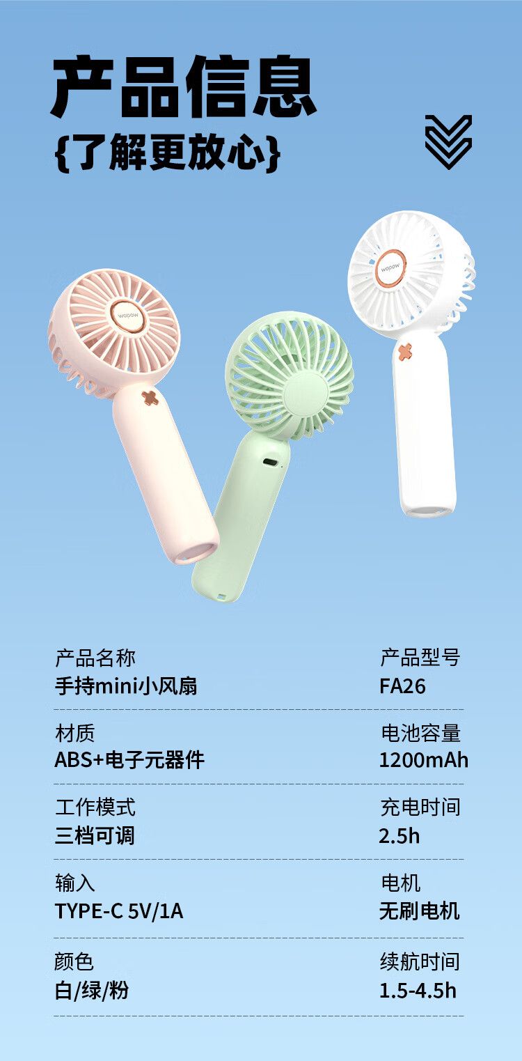 商品名称:沃品手持mini小风扇FA26 随身便携式usb充电大风力办公室学生宿舍小型手拿电风扇