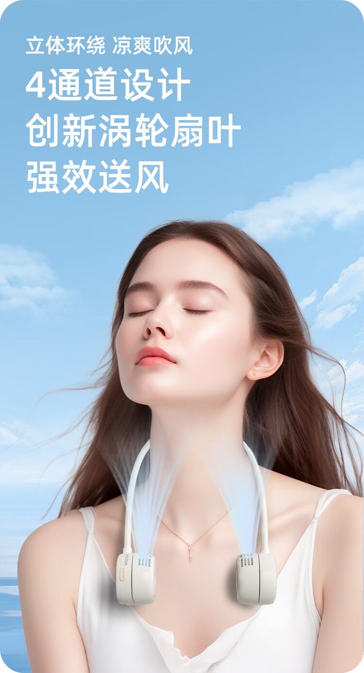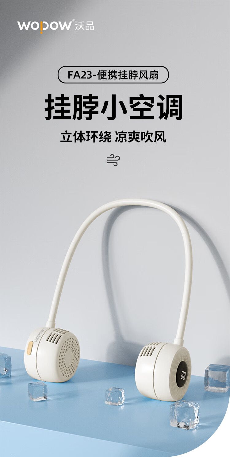 沃品 挂脖风扇FA23 无叶便携式随身迷你户外运动颈挂式电风扇USB立体环绕吹风