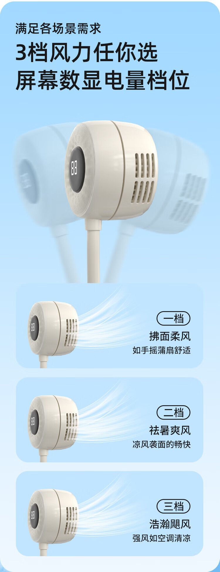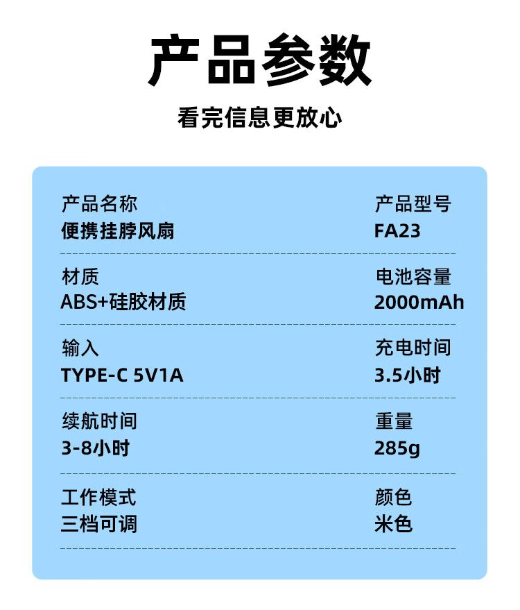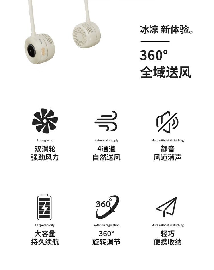 商品名称:沃品 挂脖风扇FA23 无叶便携式随身迷你户外运动颈挂式电风扇USB立体环绕吹风