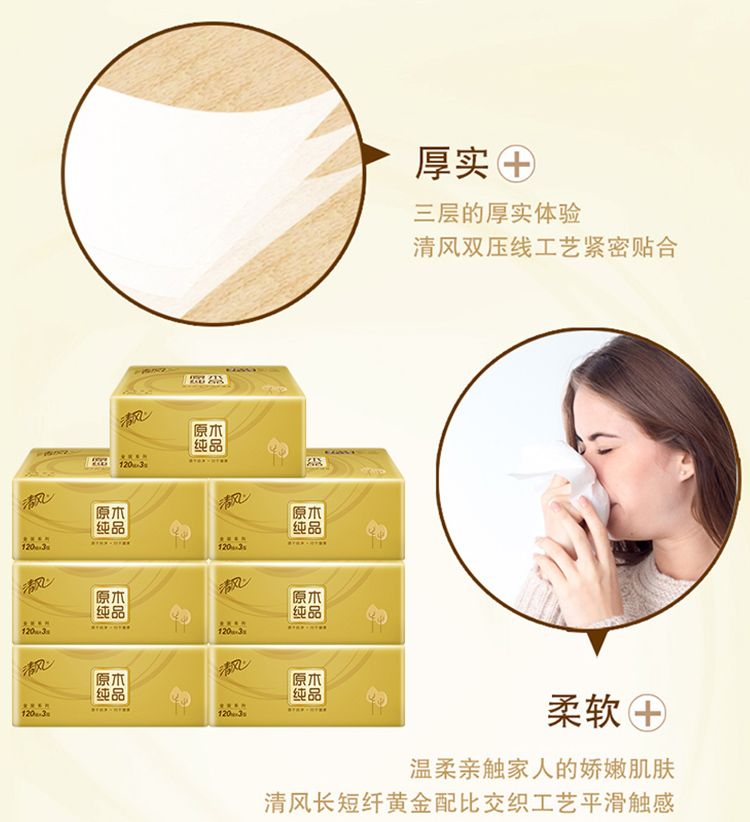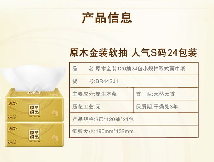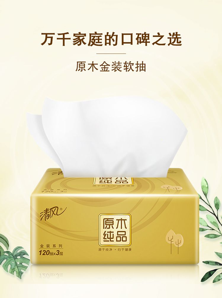 商品名称:清风 原木金装系列 抽取式面纸 120抽*4包/提*6