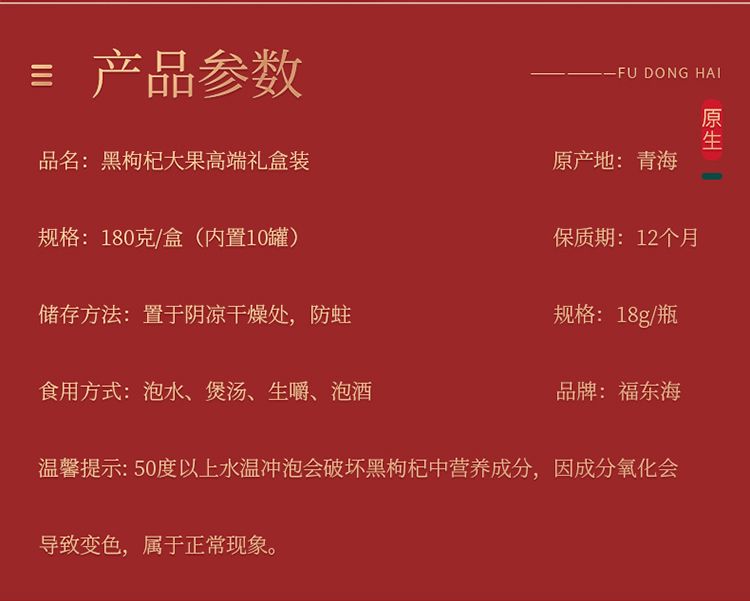 商品名称:【福东海】黑枸杞小罐茶盒礼盒180克/盒