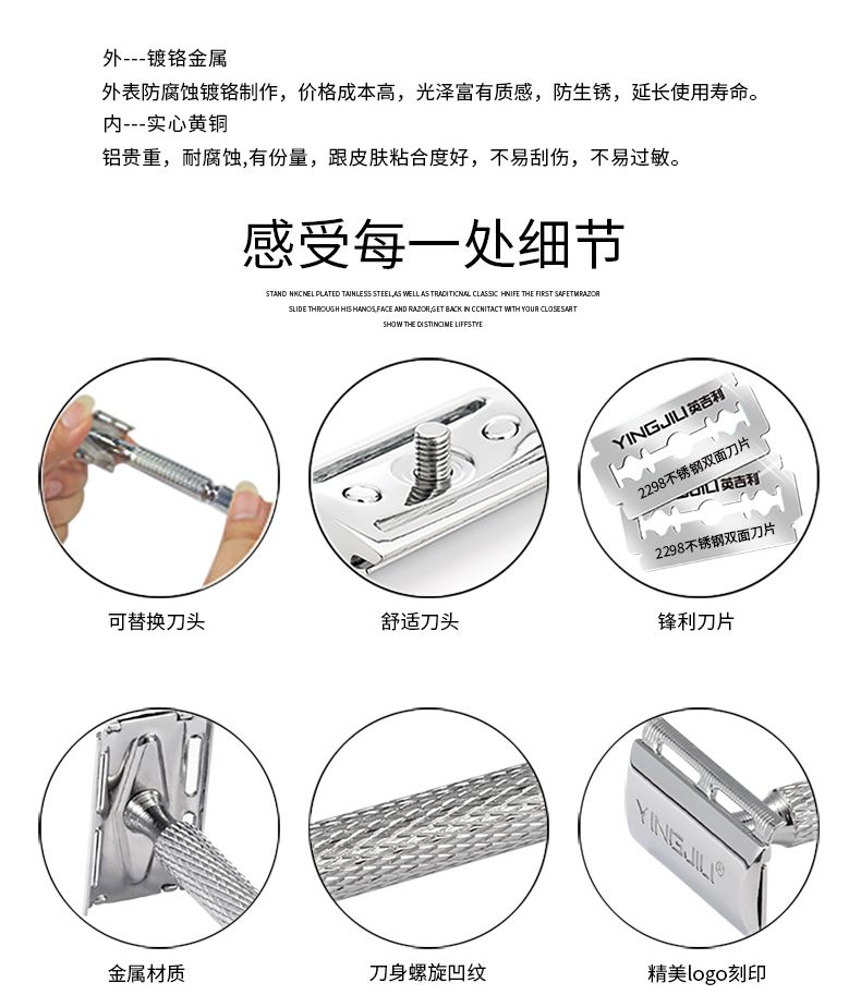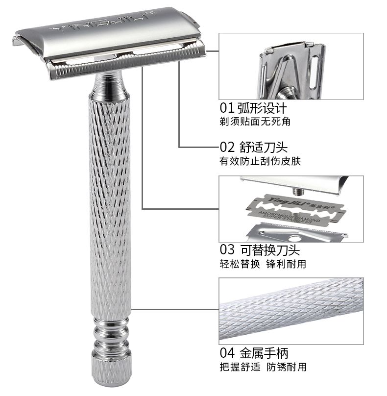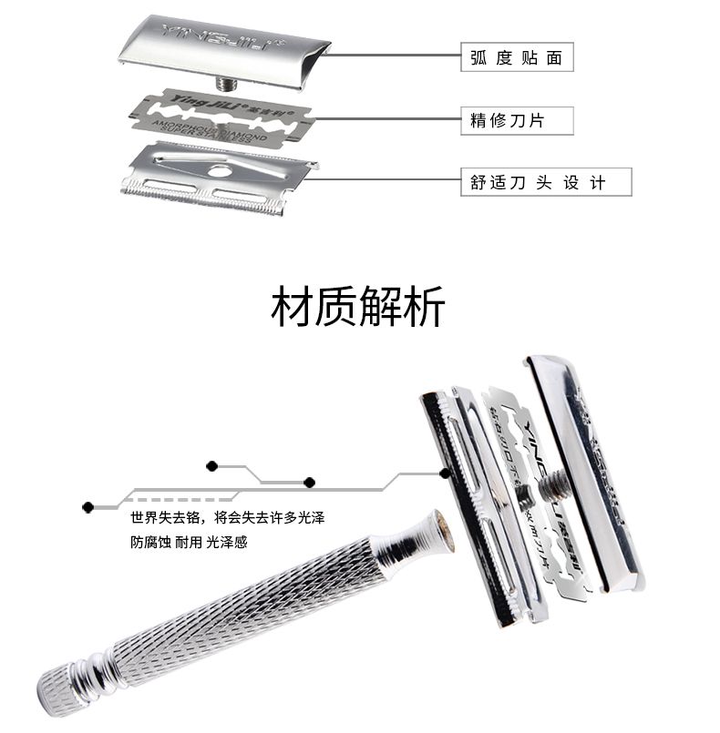 商品名称:英吉利 老式双面剃须刀手动刮胡刀 刮须刀 1刀架1刀片加送5刀片