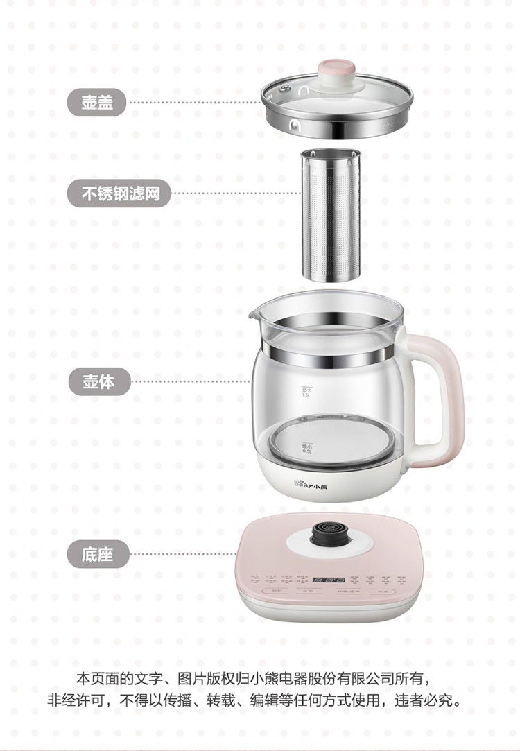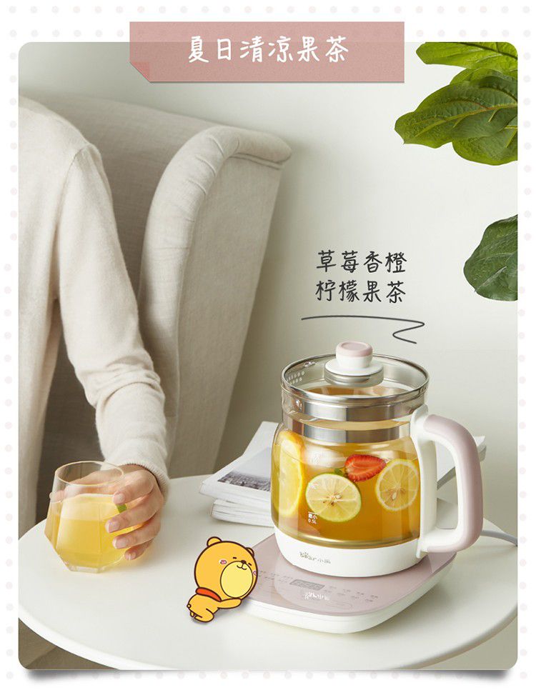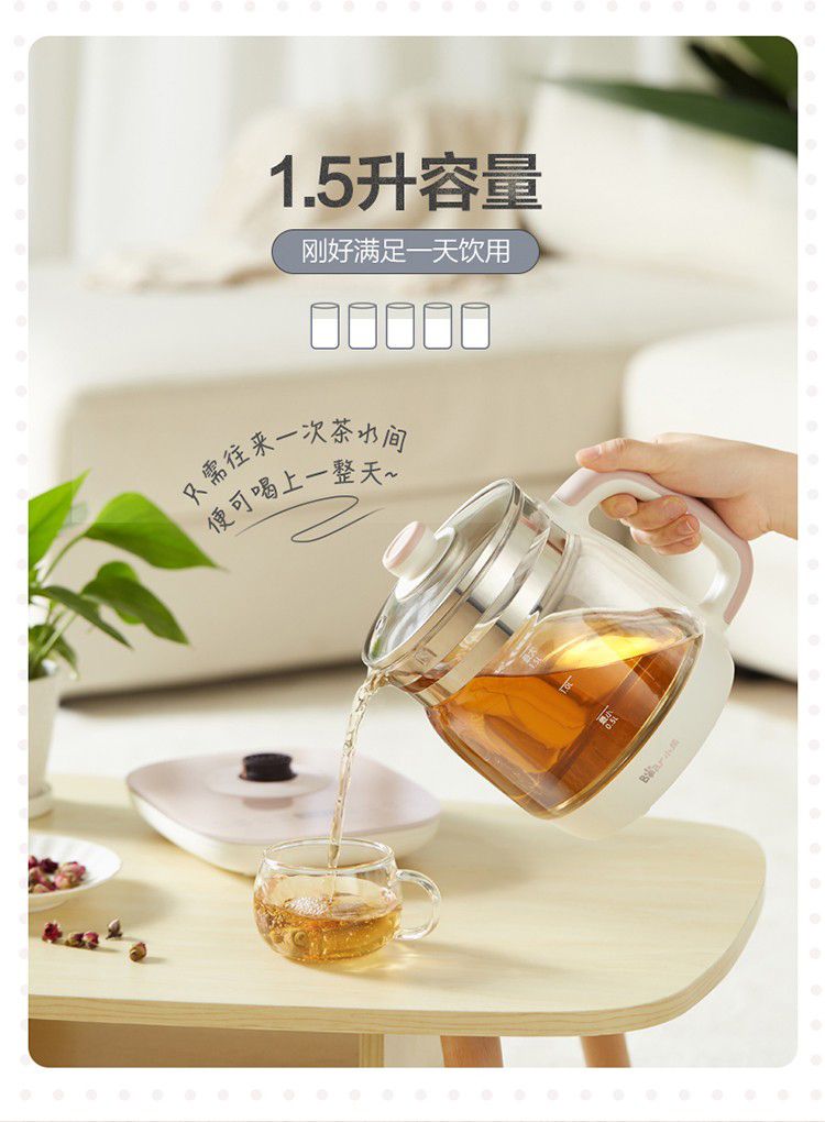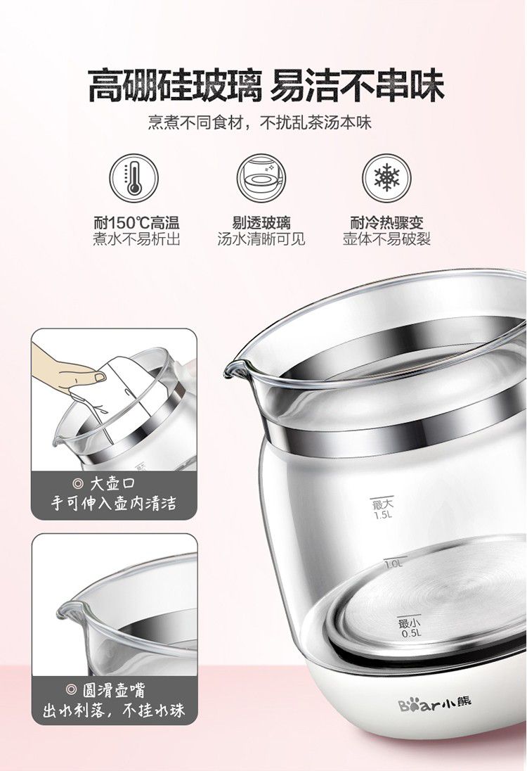 小熊养生壶YSH-A15Z8带滤网 电水壶热水壶烧水壶 花茶壶玻璃加厚煮茶器1.5L