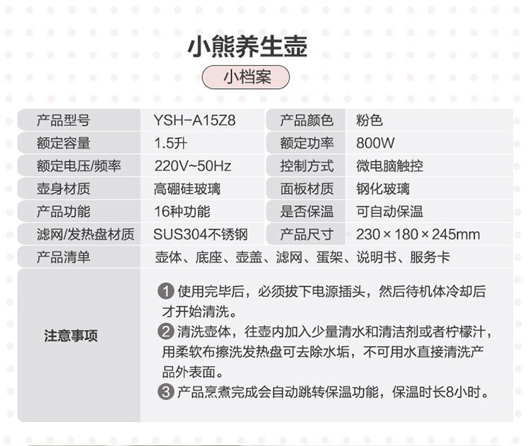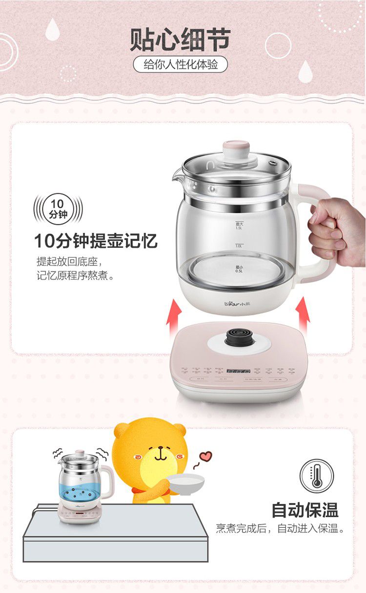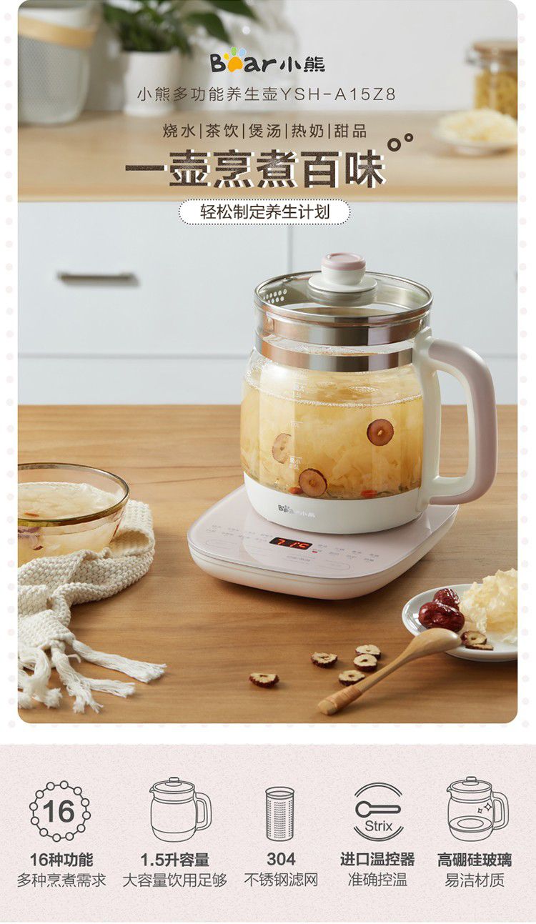 商品名称:小熊养生壶YSH-A15Z8带滤网 电水壶热水壶烧水壶 花茶壶玻璃加厚煮茶器1.5L