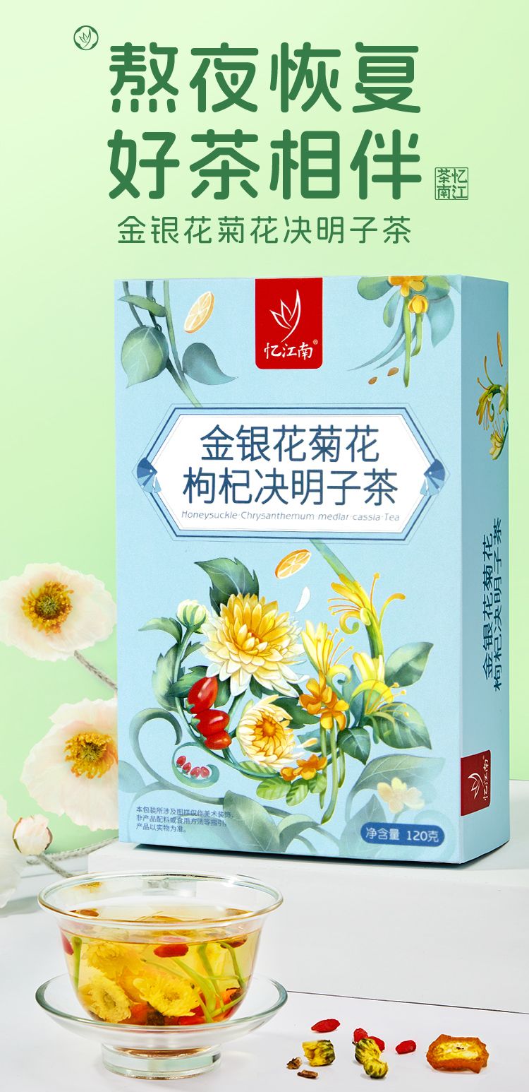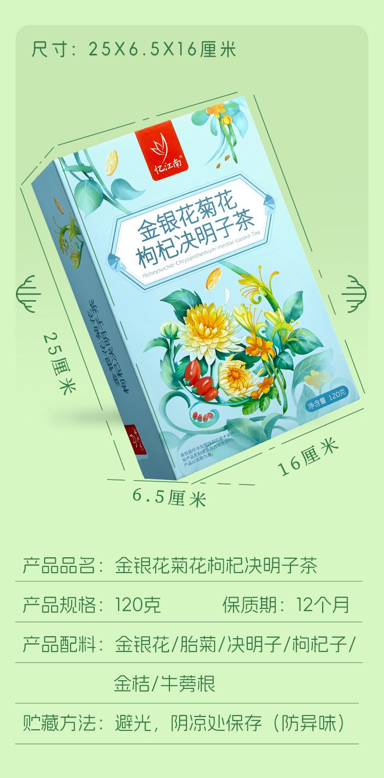 商品名称:忆江南 金银花菊花枸杞决明子茶120g*2盒