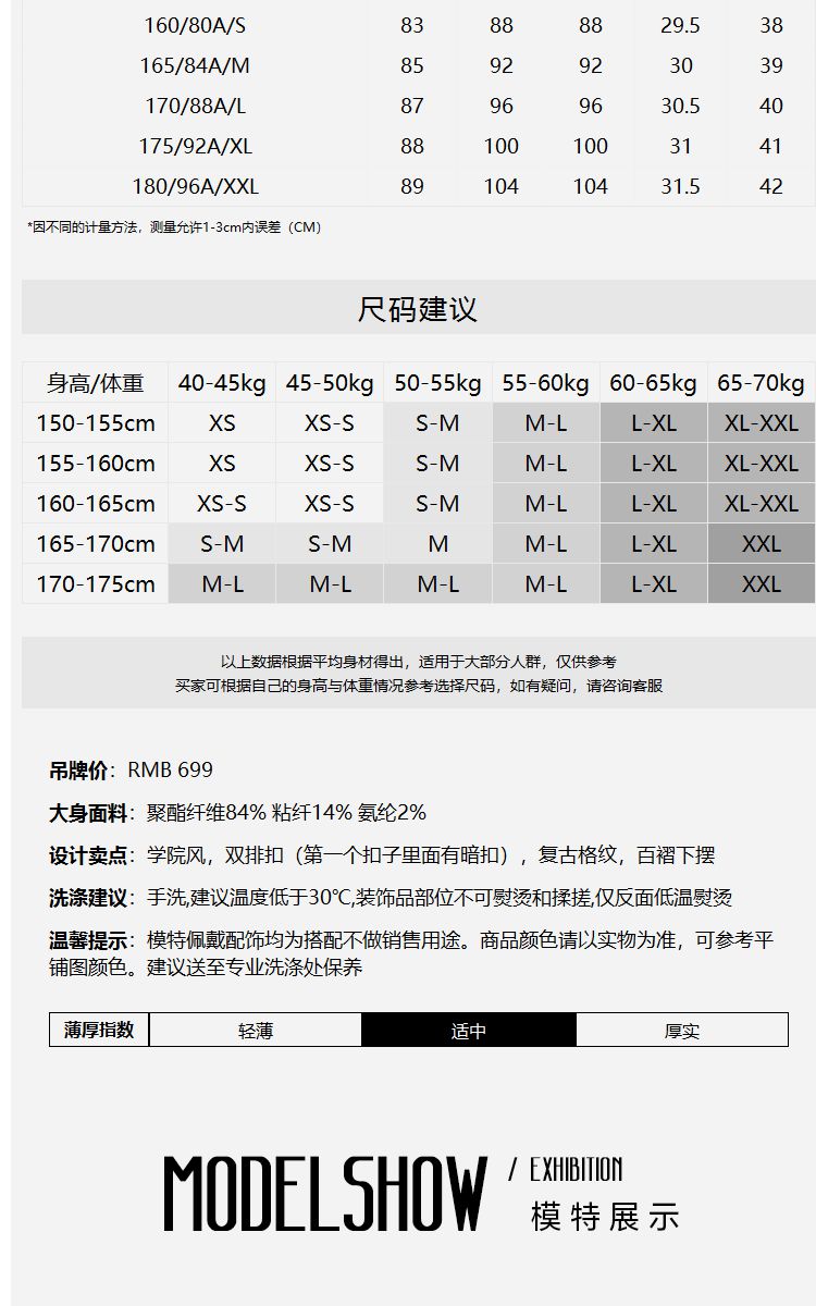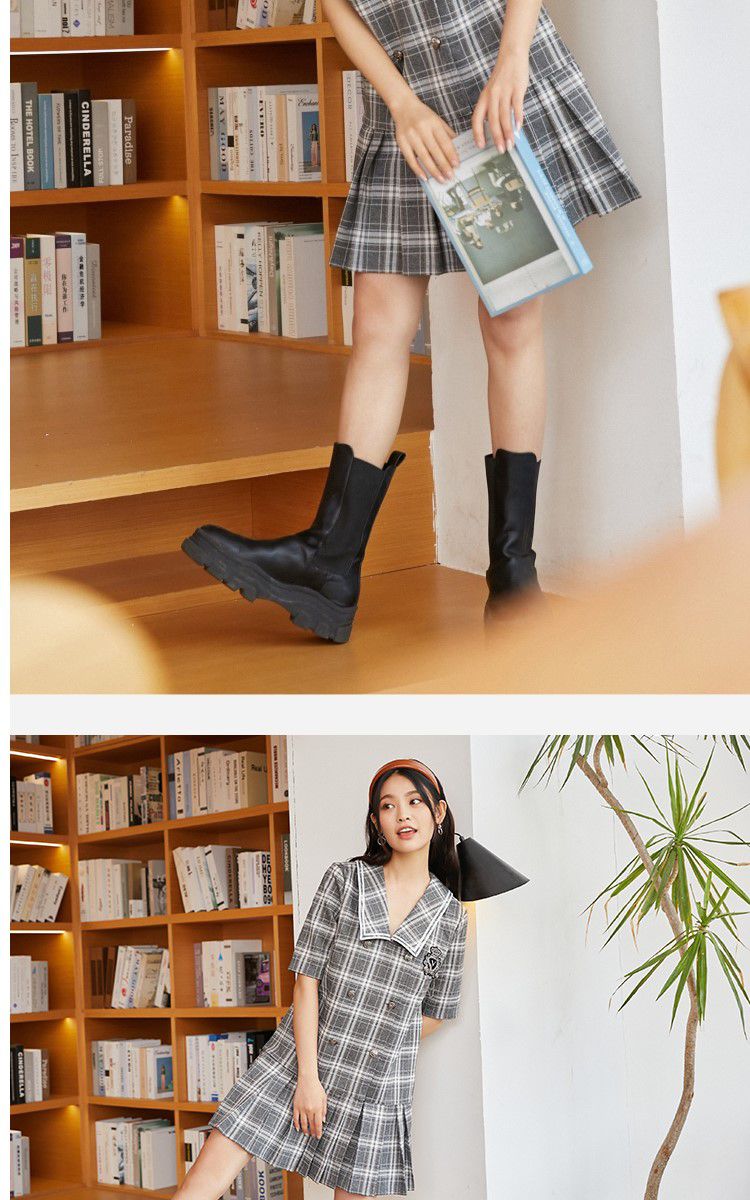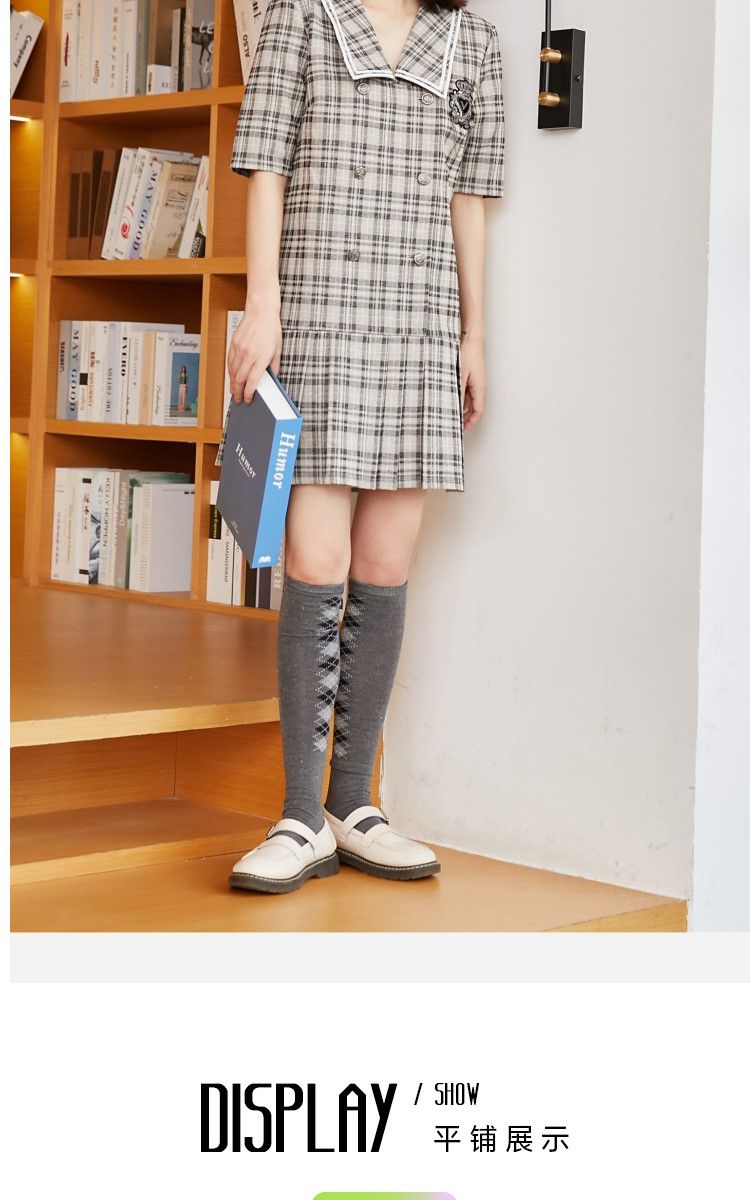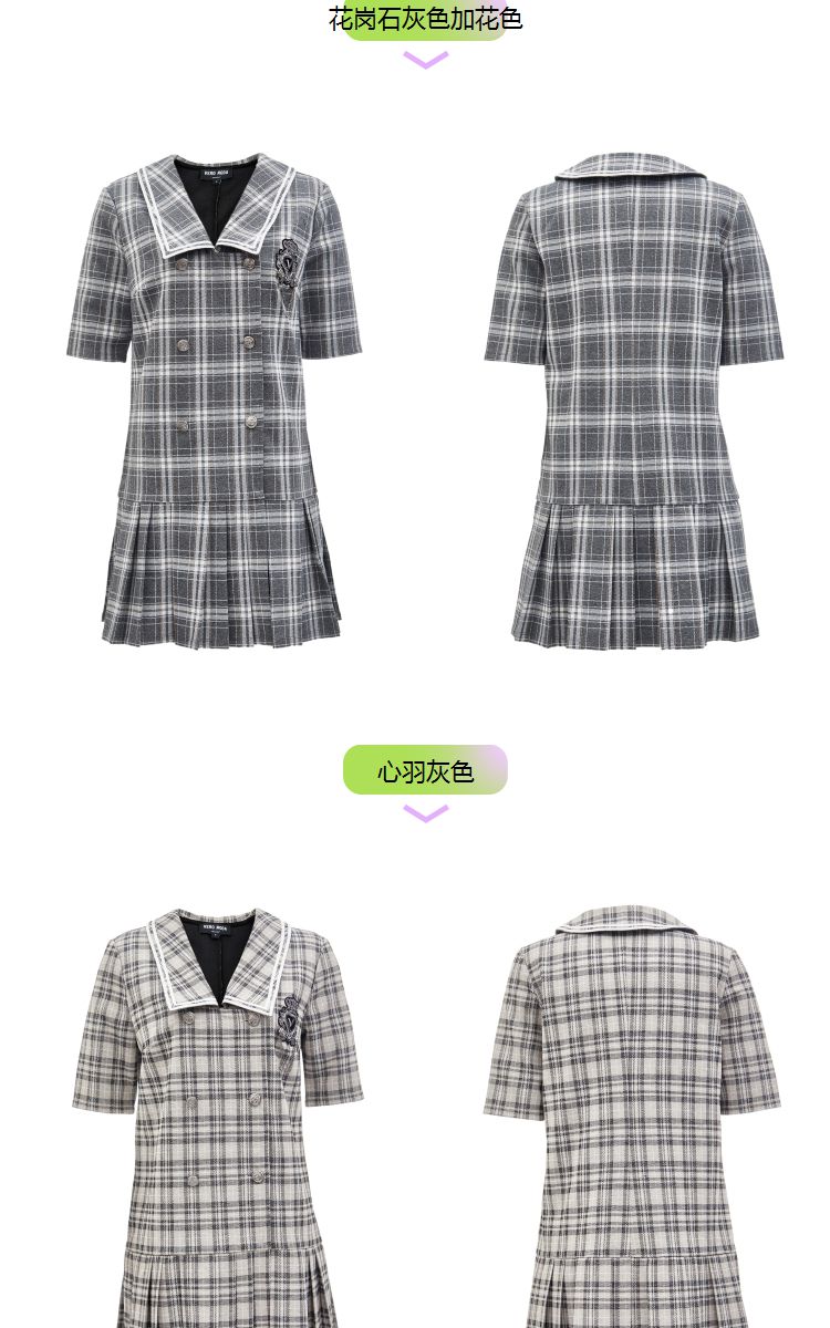 商品名称:【福利特卖款】春秋新学院风格纹大翻领百褶下摆连衣裙 014481