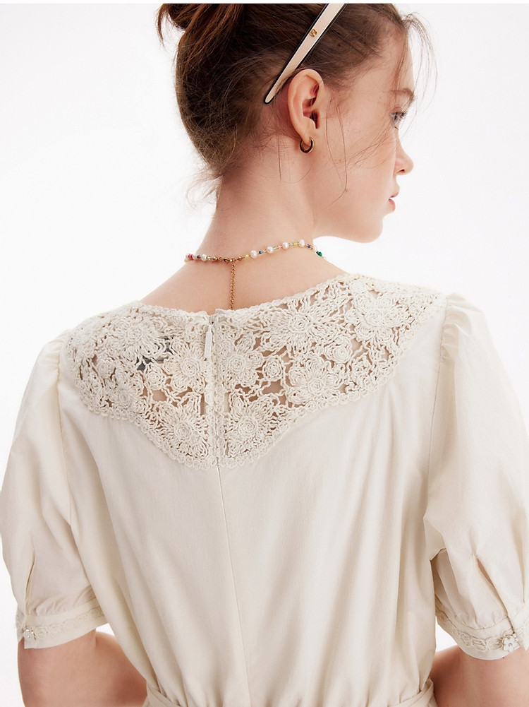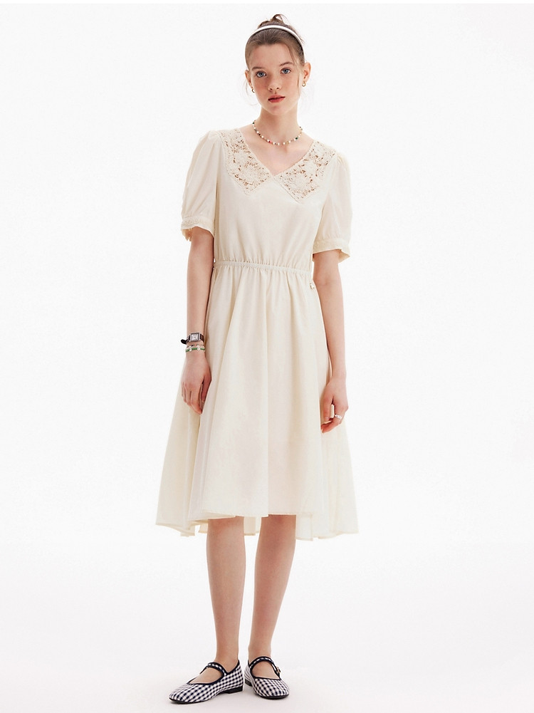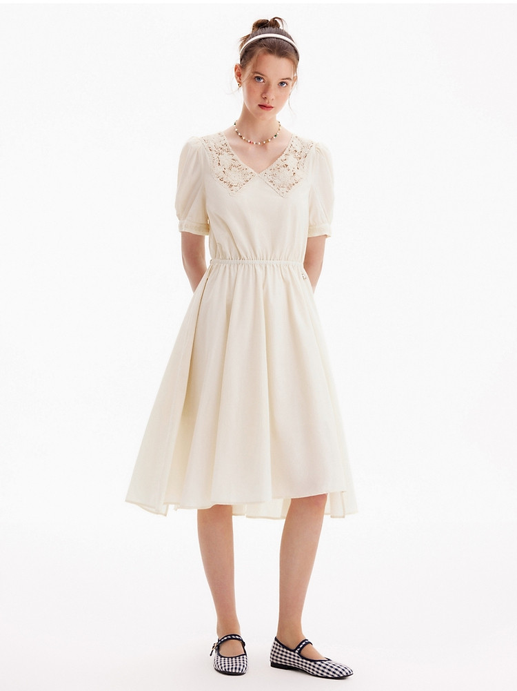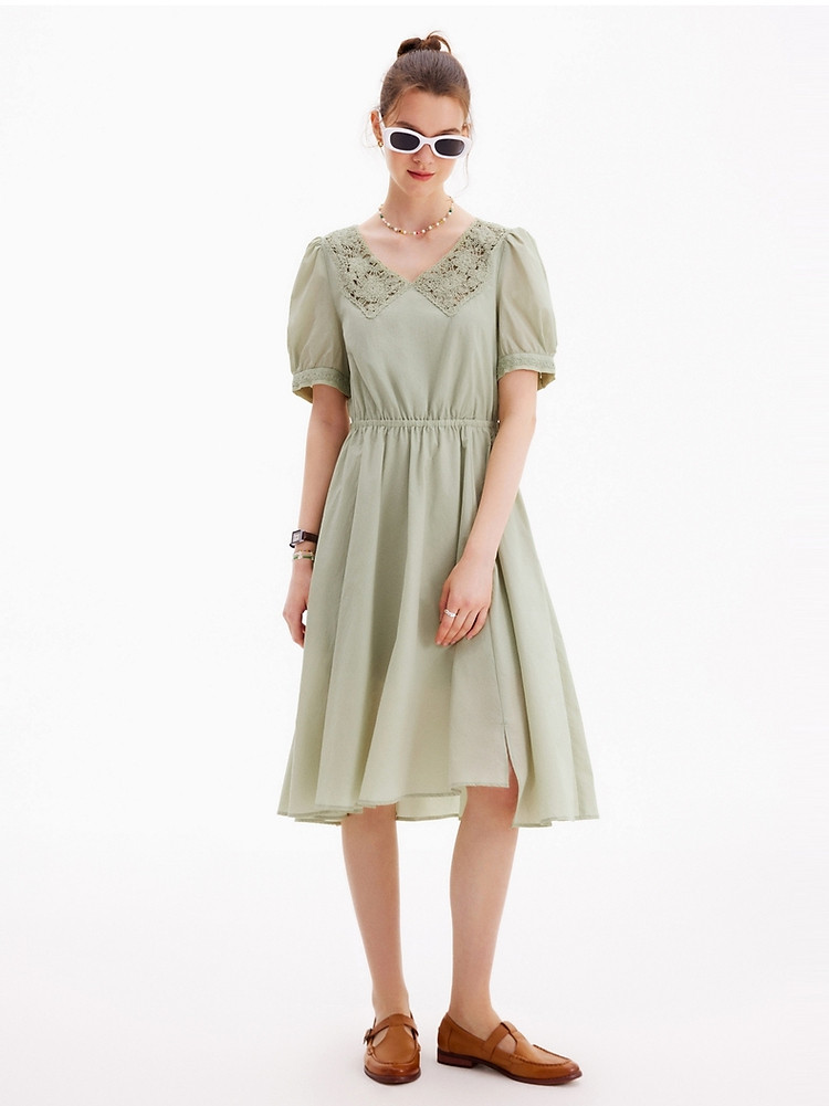 连衣裙女夏季镂空中长款V领短袖裙子女 905281