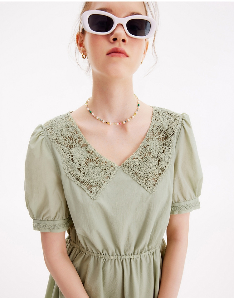 商品名称:连衣裙女夏季镂空中长款V领短袖裙子女 905281