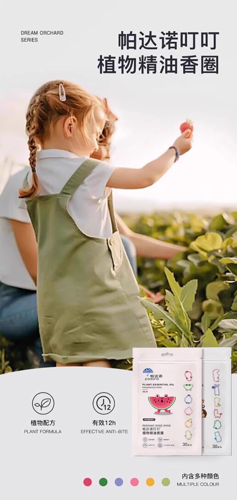 商品名称:帕达诺儿童植物精油手环驱蚊喷雾60条【卡通萌趣30条*2包】